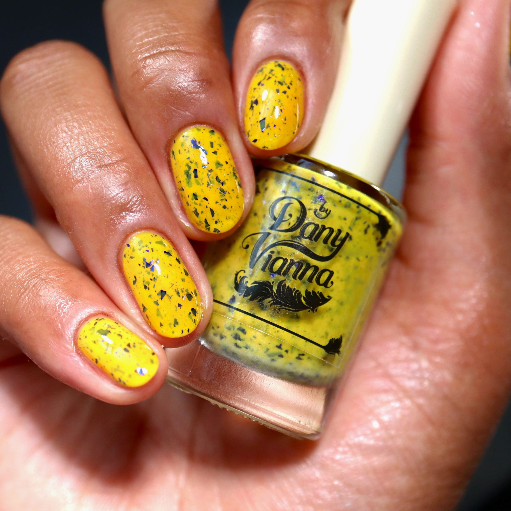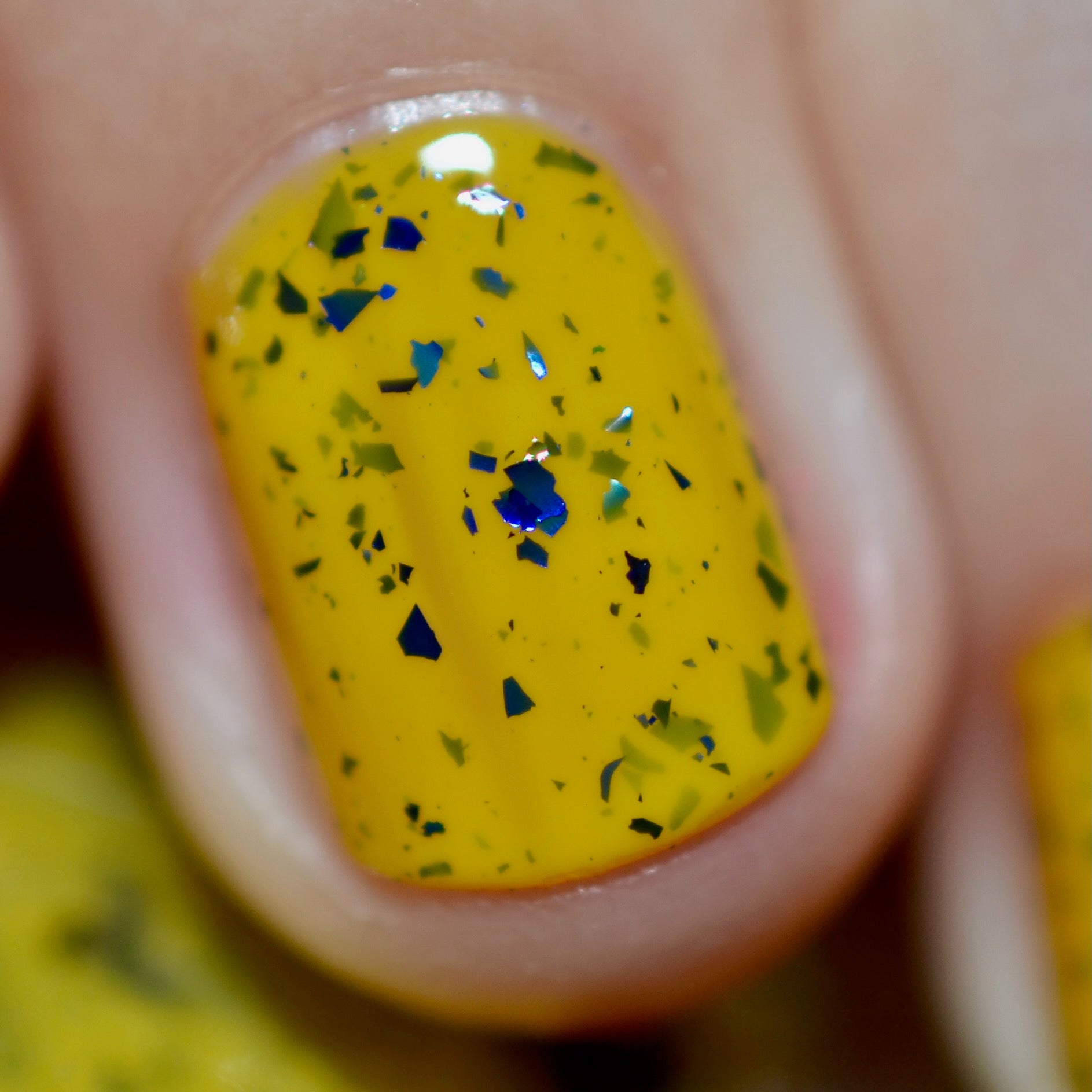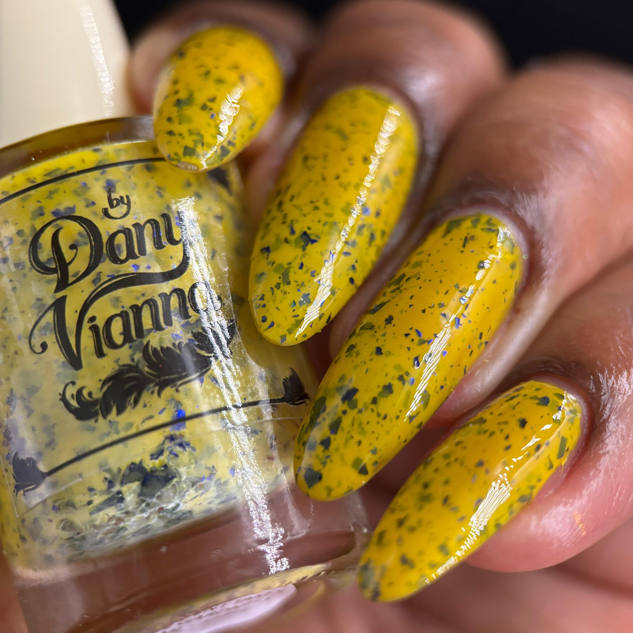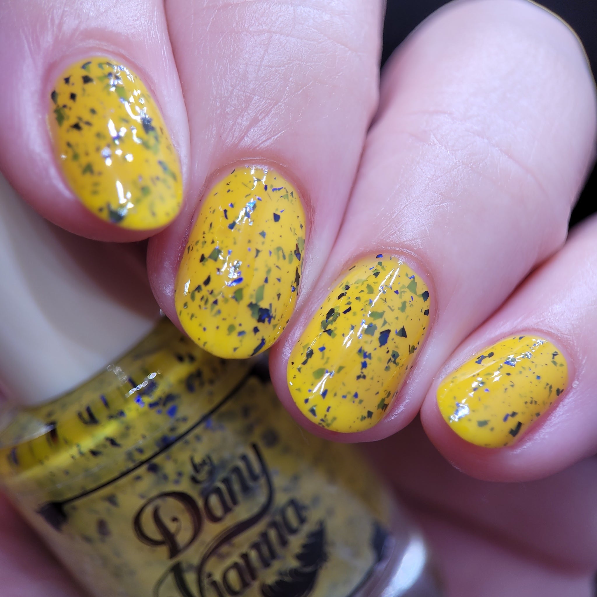 Vincent takes the Gardens has a bright yellow crelly base with a mix of indigo-purple metallic flakes and blue to black UCC flakes.