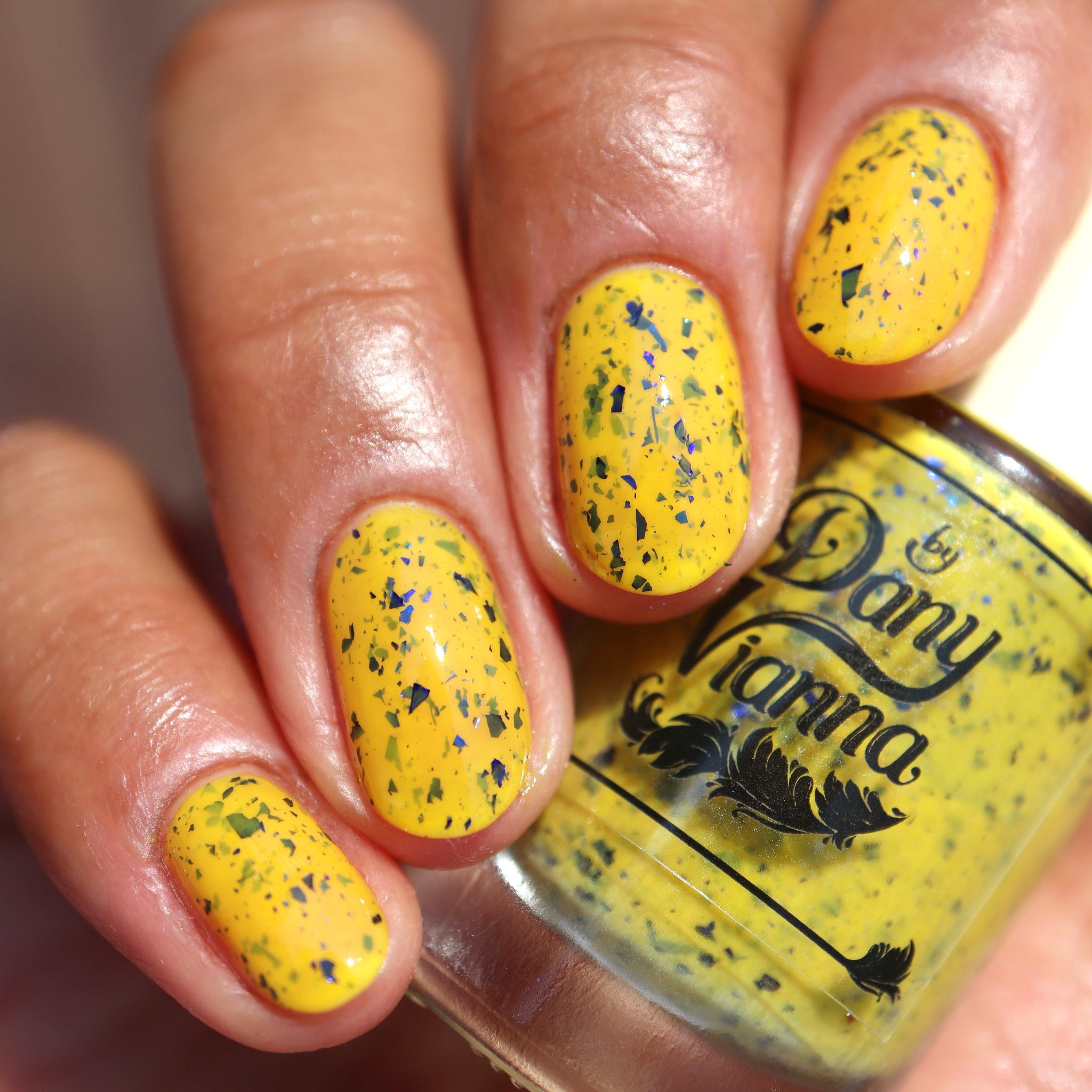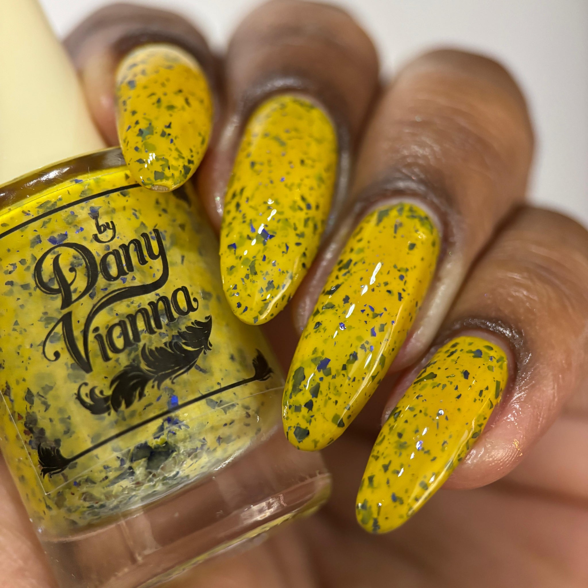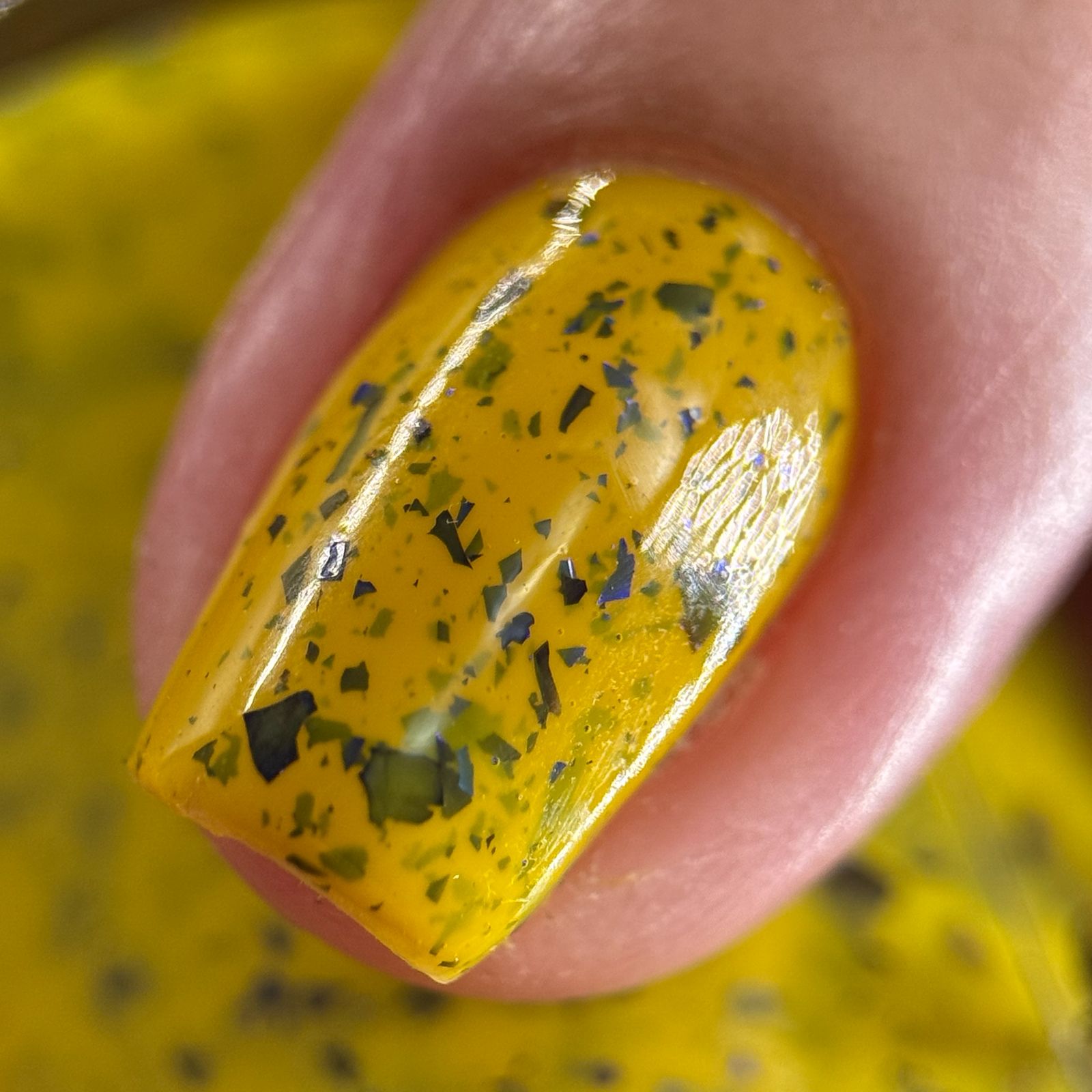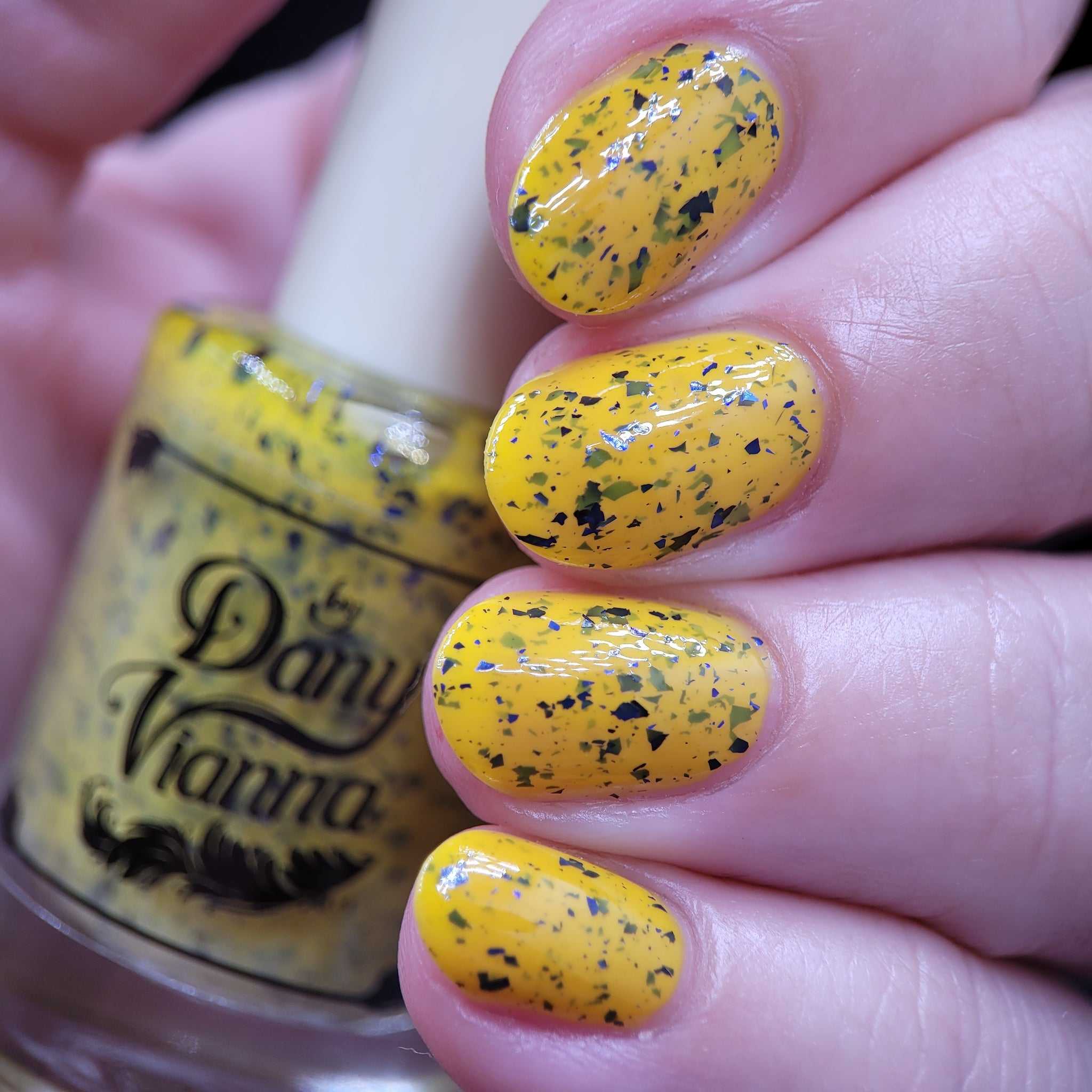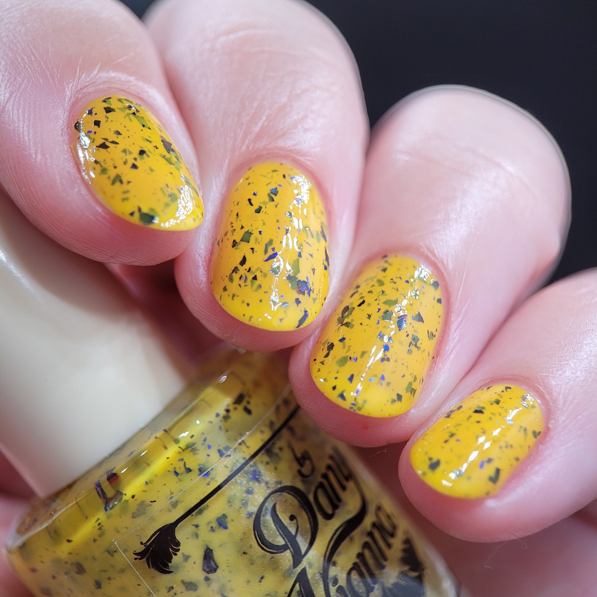 Vincent takes the Gardens has a bright yellow crelly base with a mix of indigo-purple metallic flakes and blue to black UCC flakes.