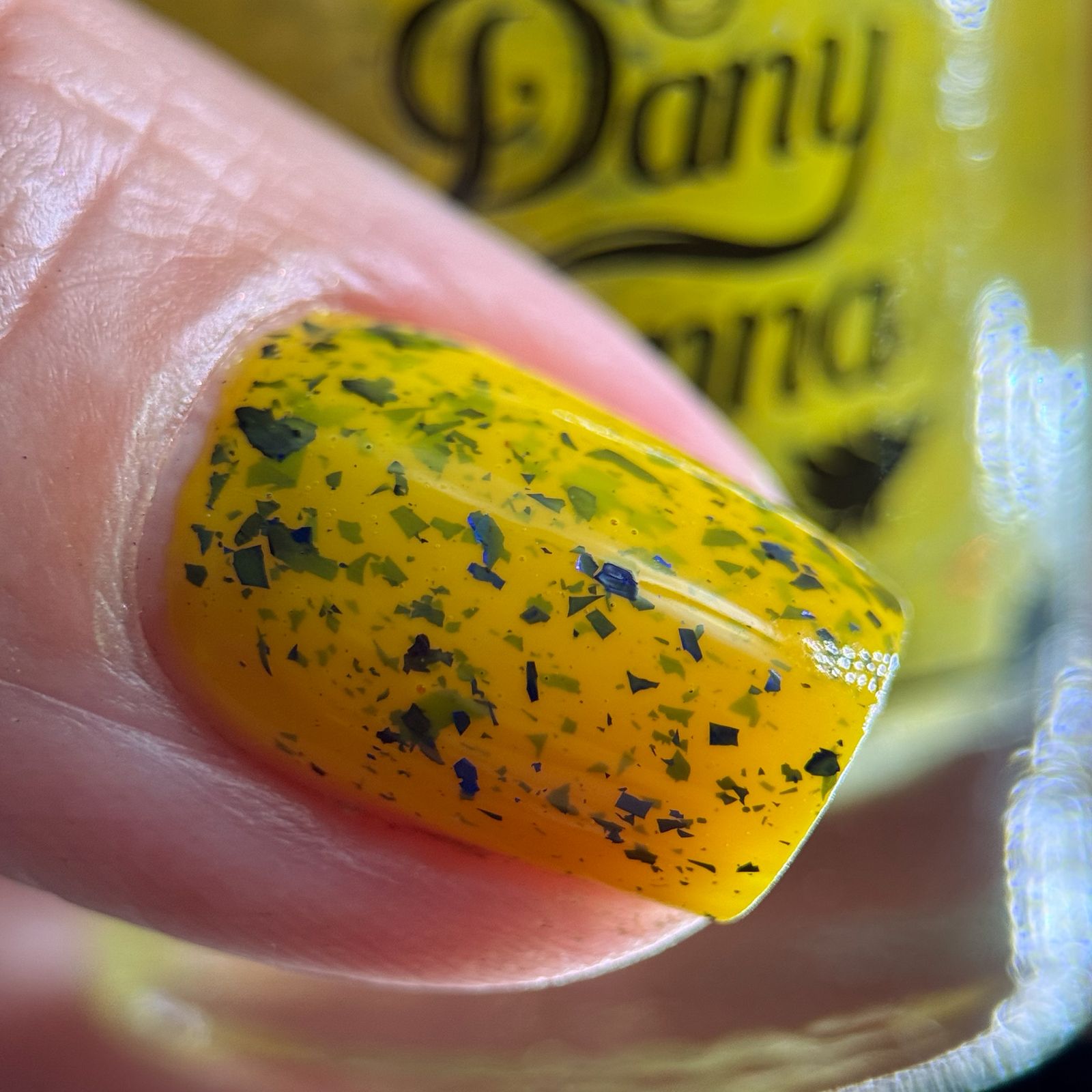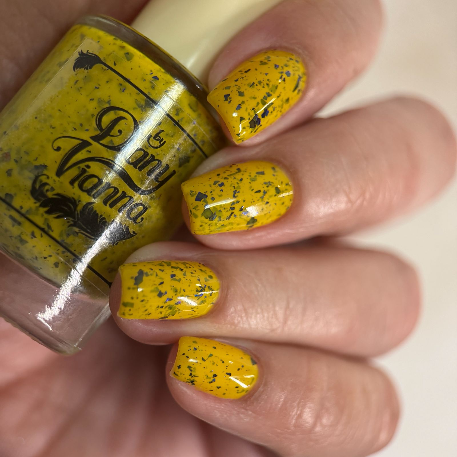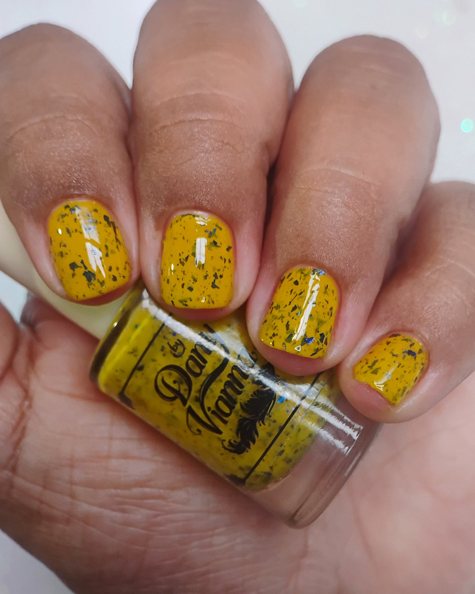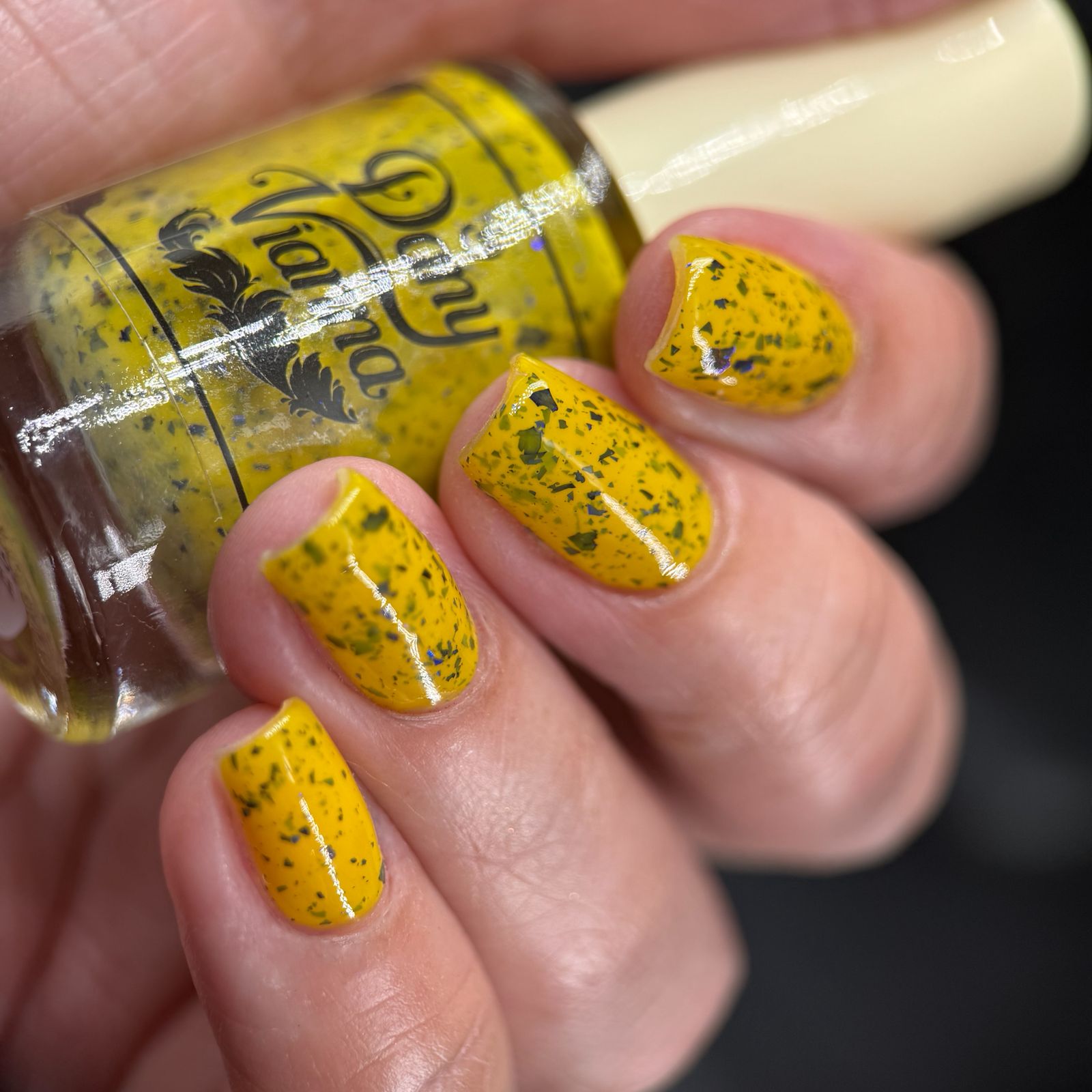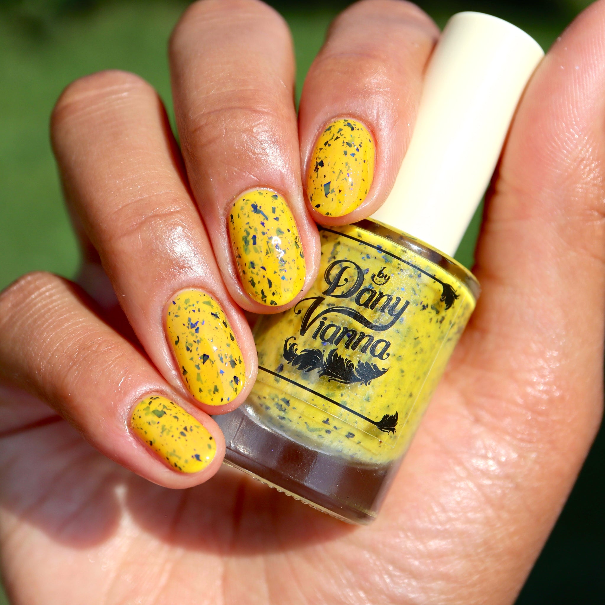 Vincent takes the Gardens has a bright yellow crelly base with a mix of indigo-purple metallic flakes and blue to black UCC flakes.