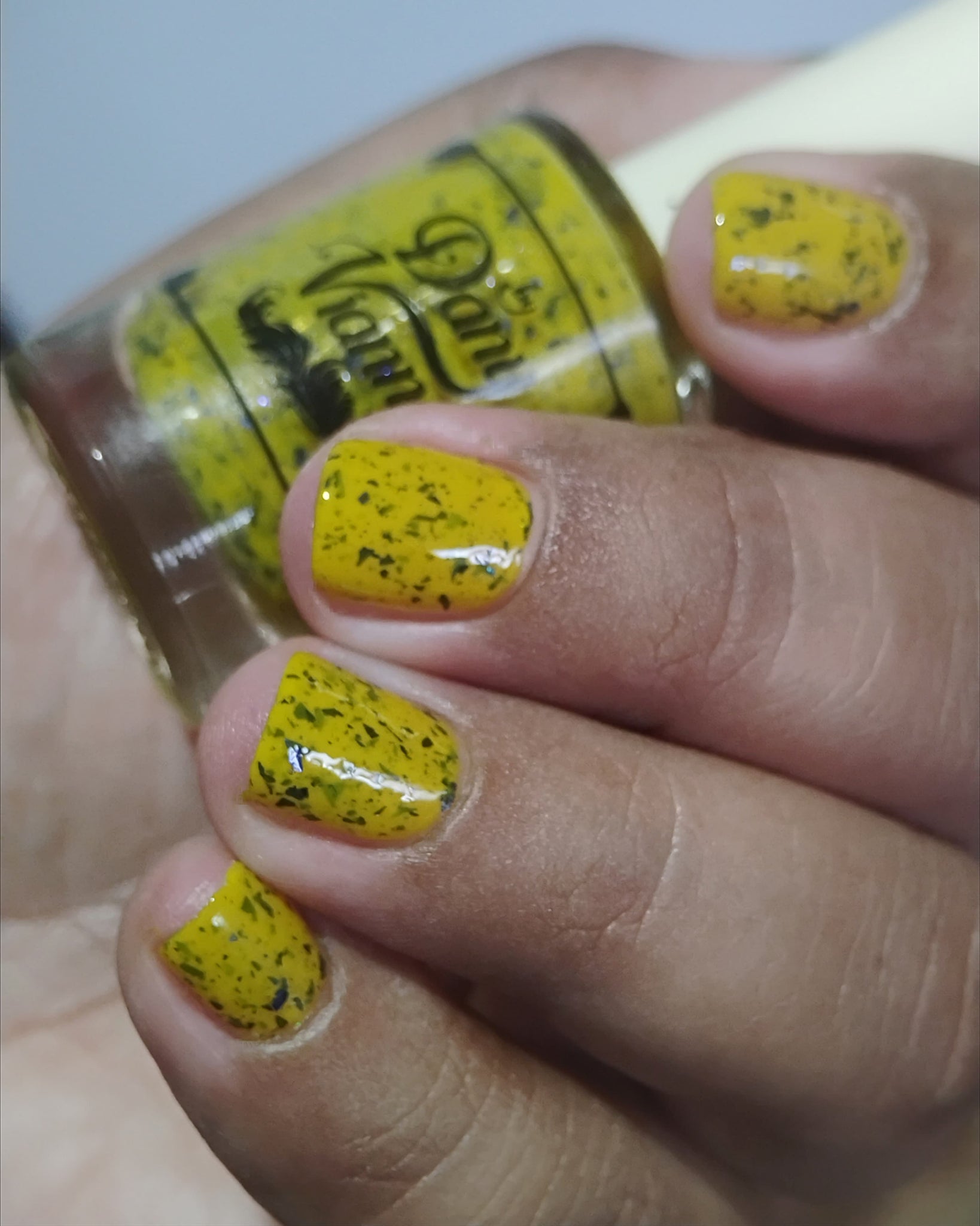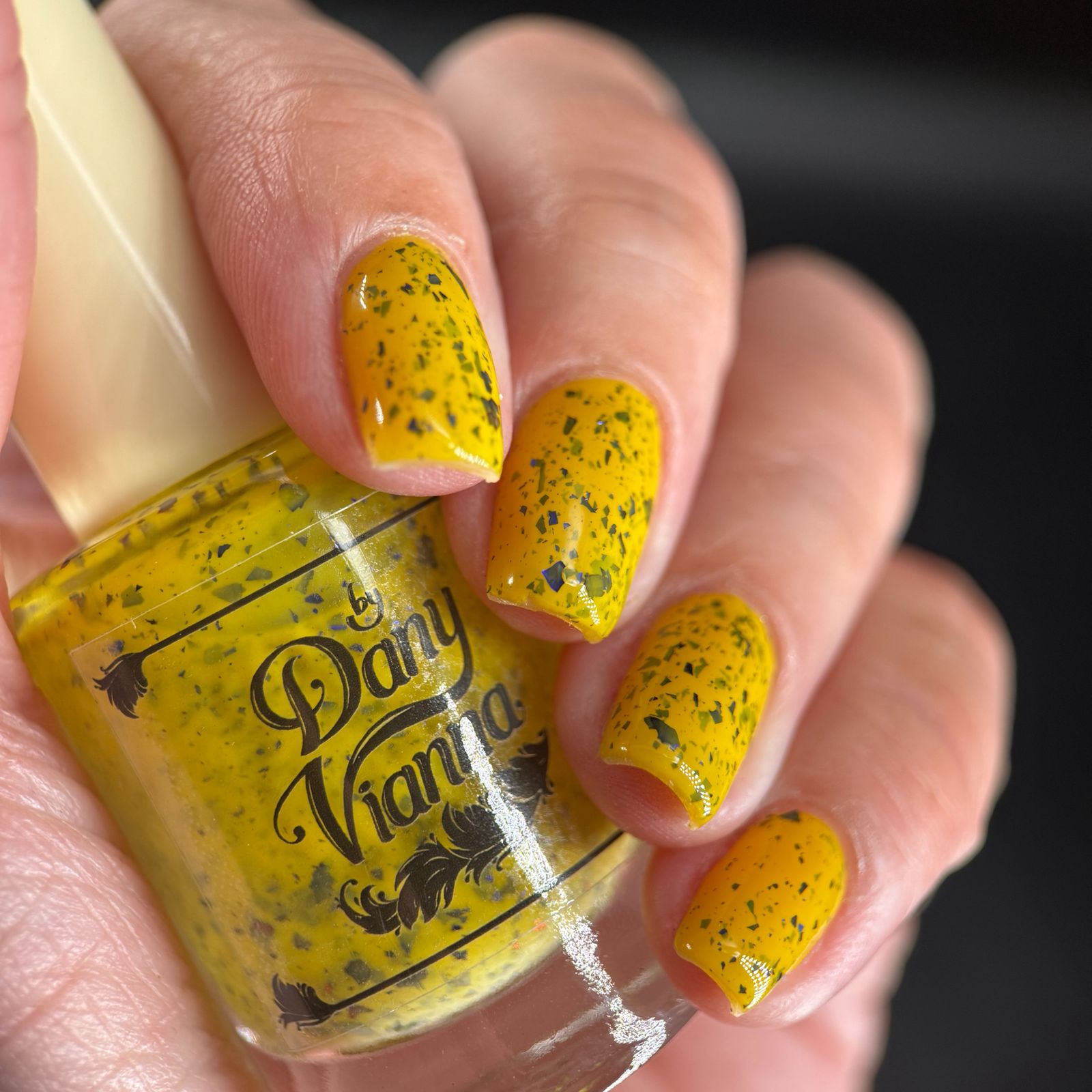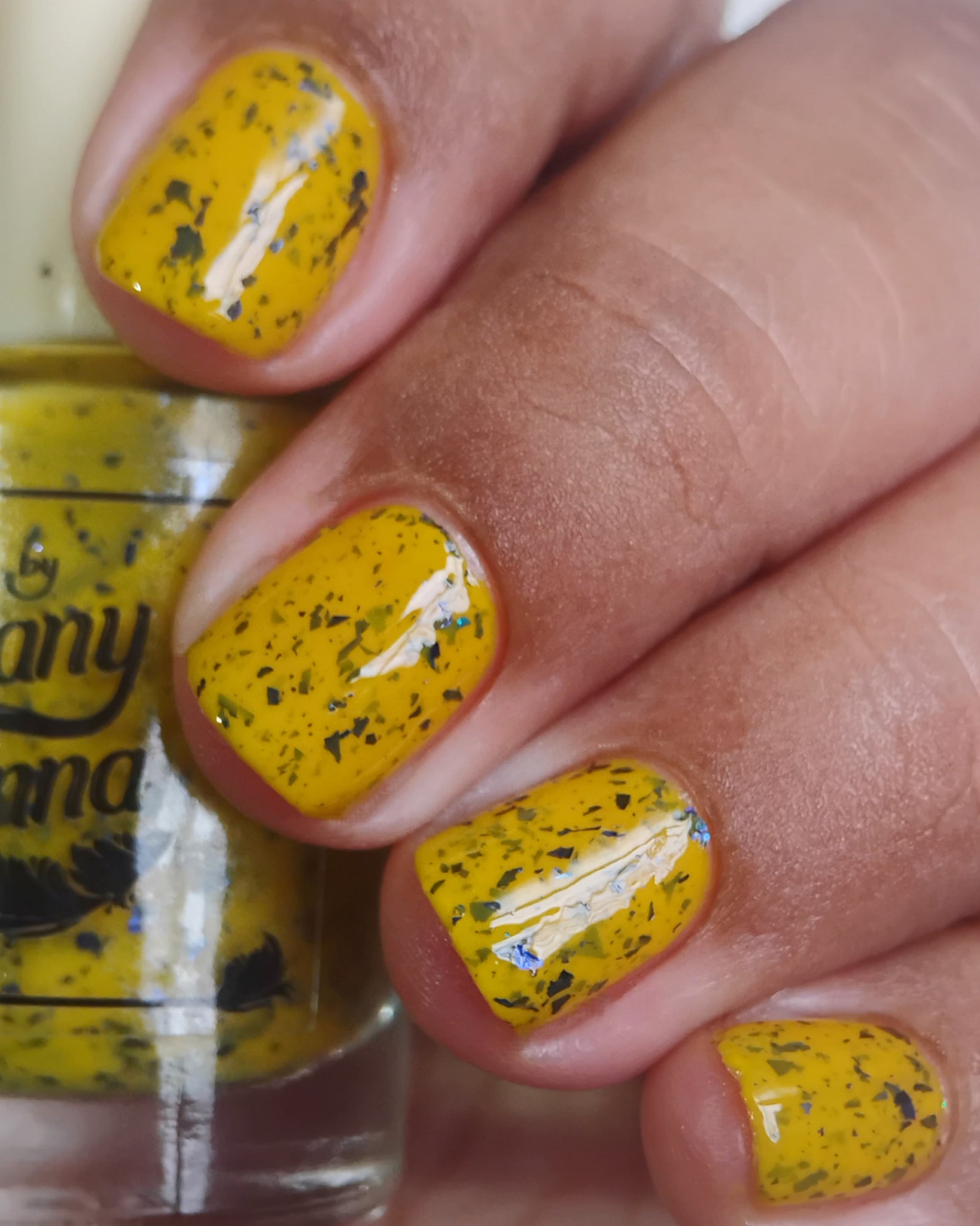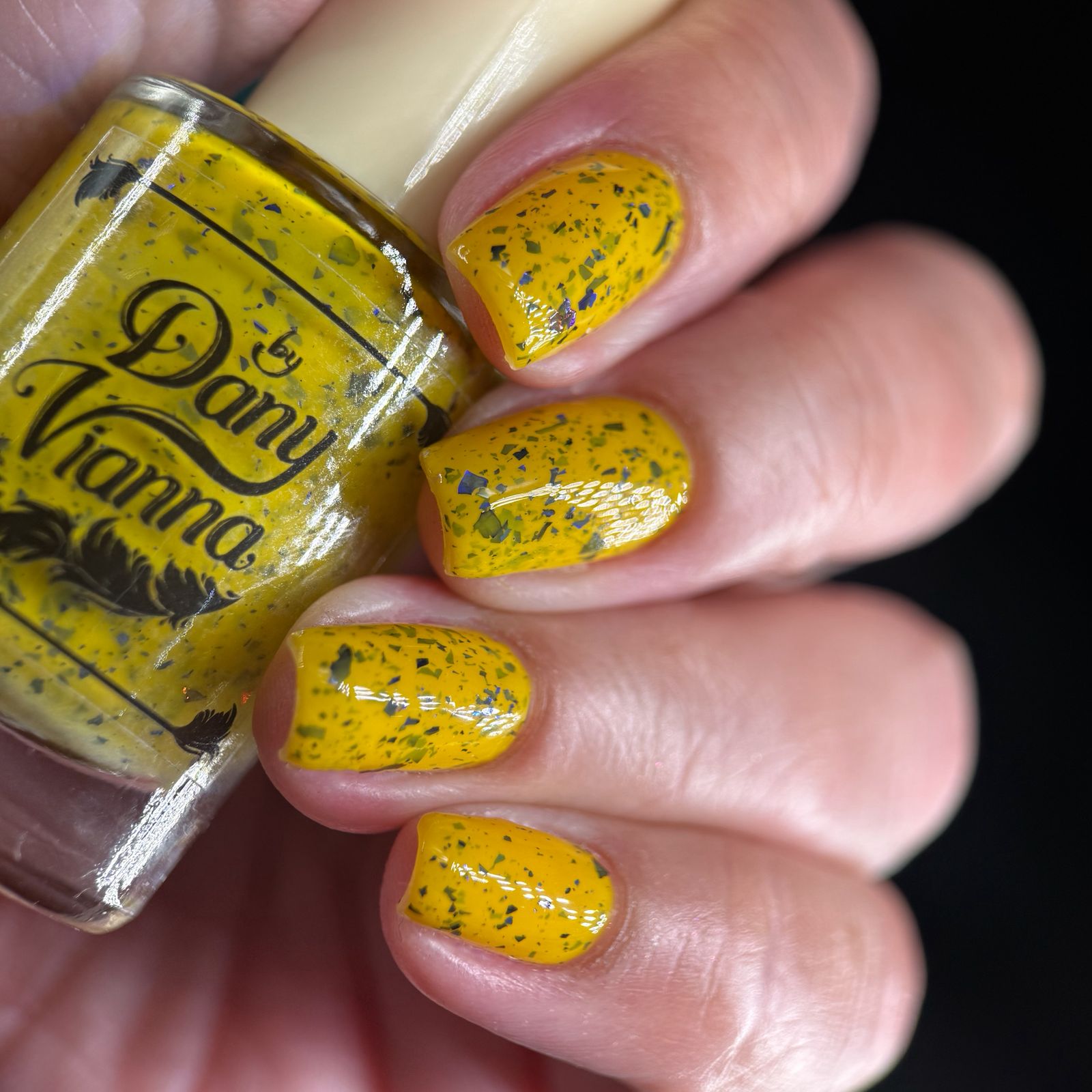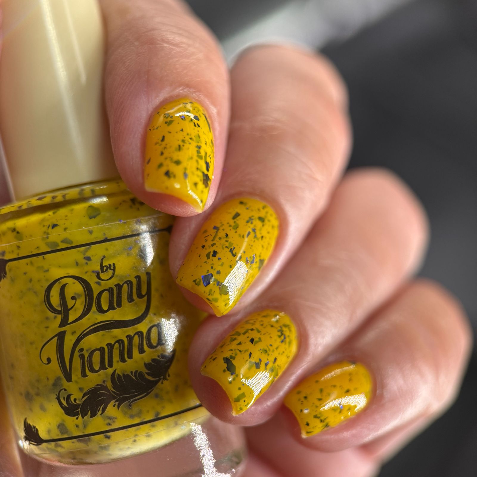 Vincent takes the Gardens has a bright yellow crelly base with a mix of indigo-purple metallic flakes and blue to black UCC flakes.
