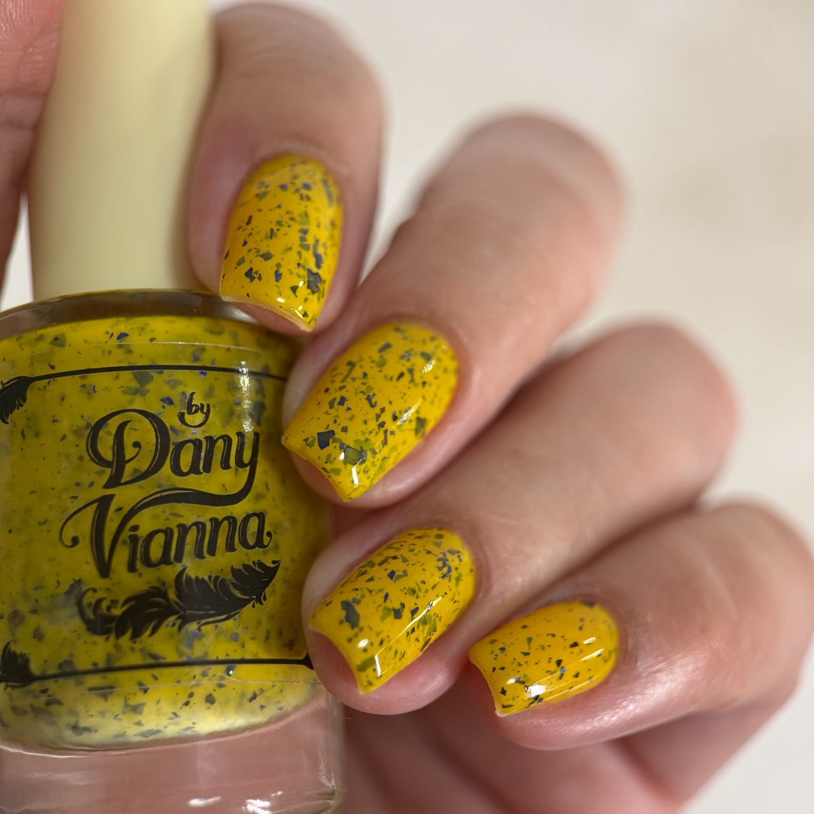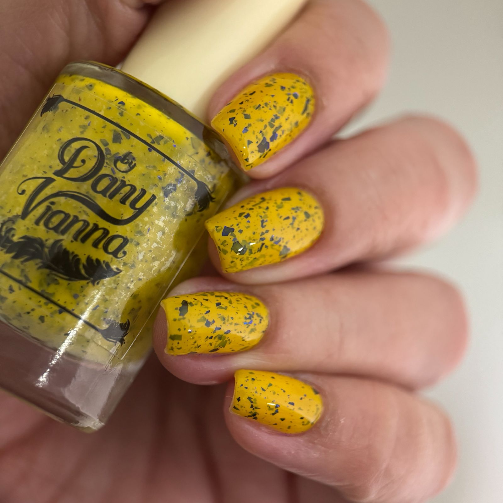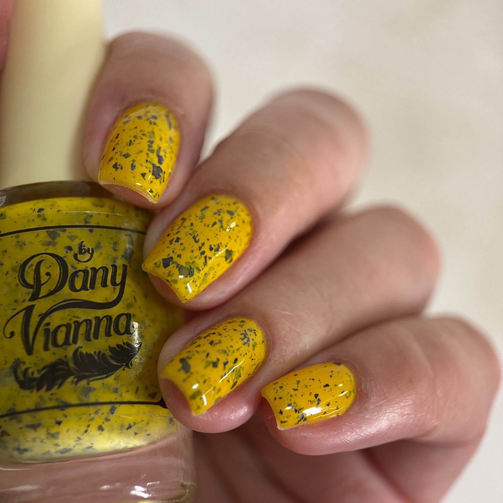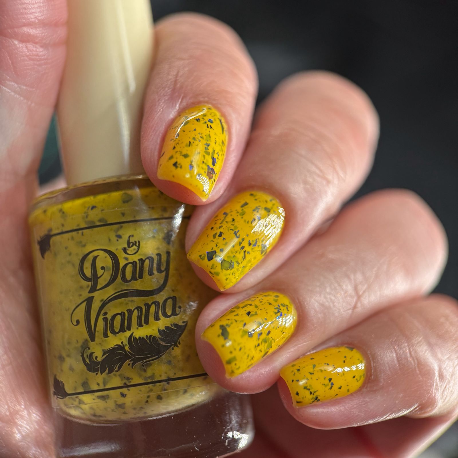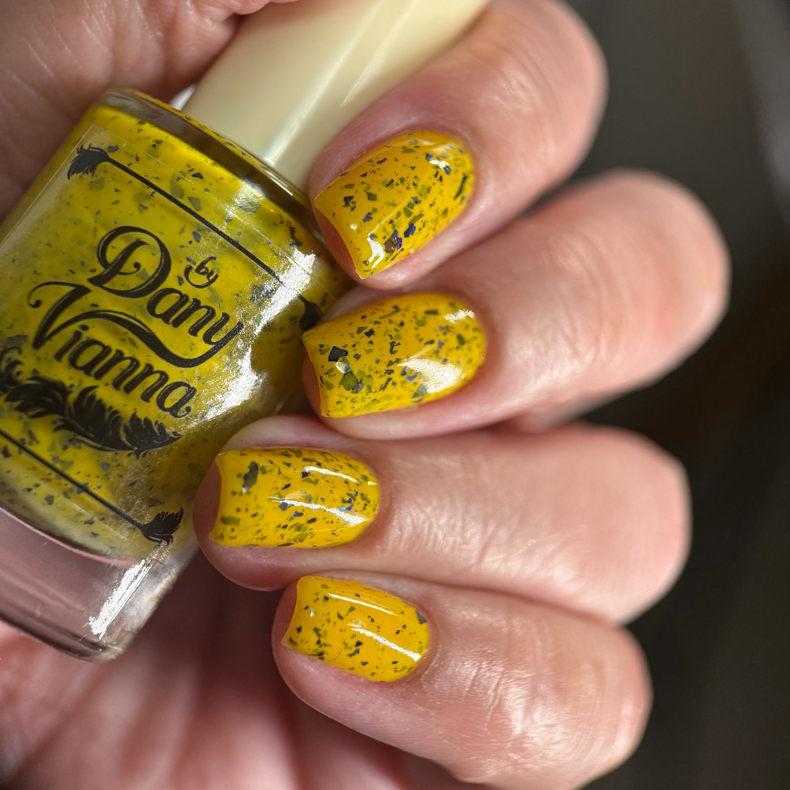 Vincent takes the Gardens has a bright yellow crelly base with a mix of indigo-purple metallic flakes and blue to black UCC flakes.