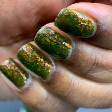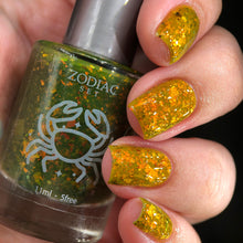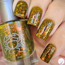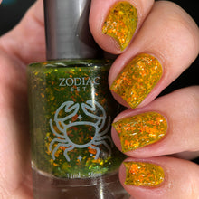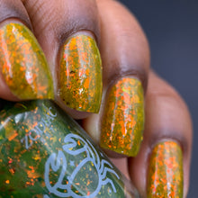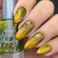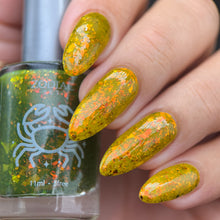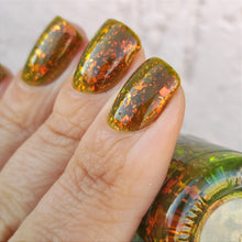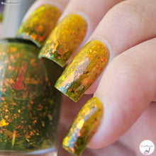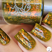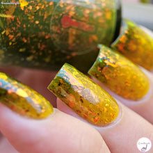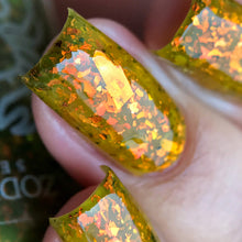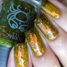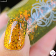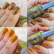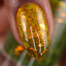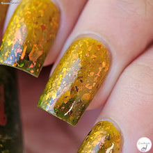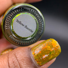 Yellow (hot) to green (cold) with a mix of iridescent and UCC orange flakes