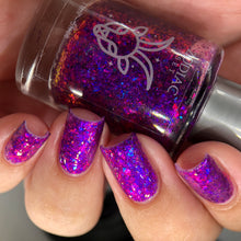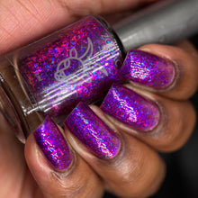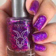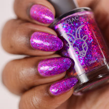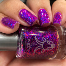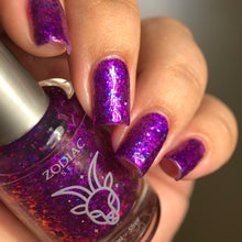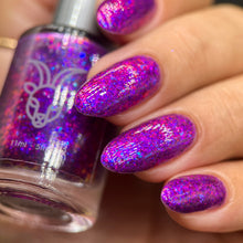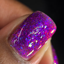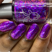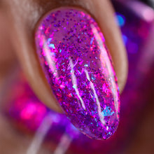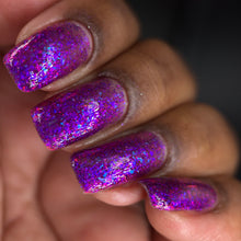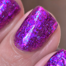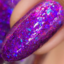 purple sheer jelly base with a mix of iridescent flakes and purple galaxy glitters