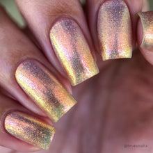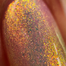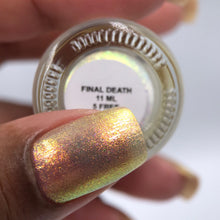 topper with aurora shimmer in larger copper-gold-green particles (inspired when there is no one else in the world of the living to remember the dead)