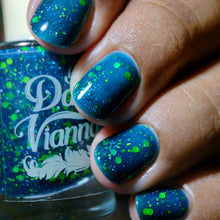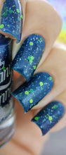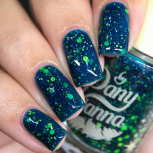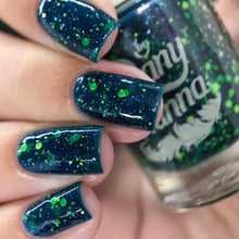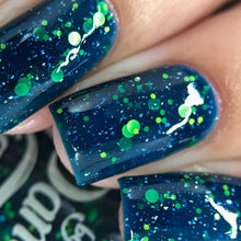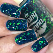 Just as Tiana and Naveen go down the river with Louis, we have Evangeline, a dark blue jelly base with holographic flakes and yellow neon dots and small glitters. It's inspired by Ray, and his family, as the yellow neon glitter were supposed to reflects them fireflies butts lighted. I twinked the old formula a bit and added the neon dots.