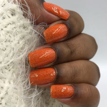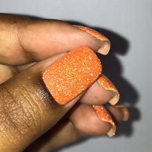 neon orange jelly base with a mix of silver and orange reflective glitter