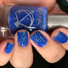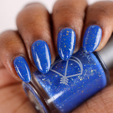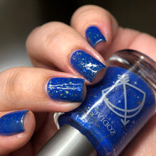 ultra marine crelly base with a mix of gold metallic shreds, flakes and