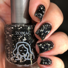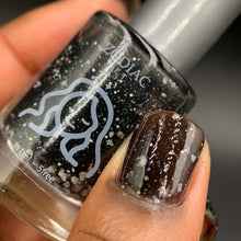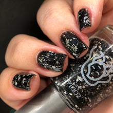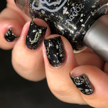 black jelly base with irregular white glitters and silver holographic galaxy glitter