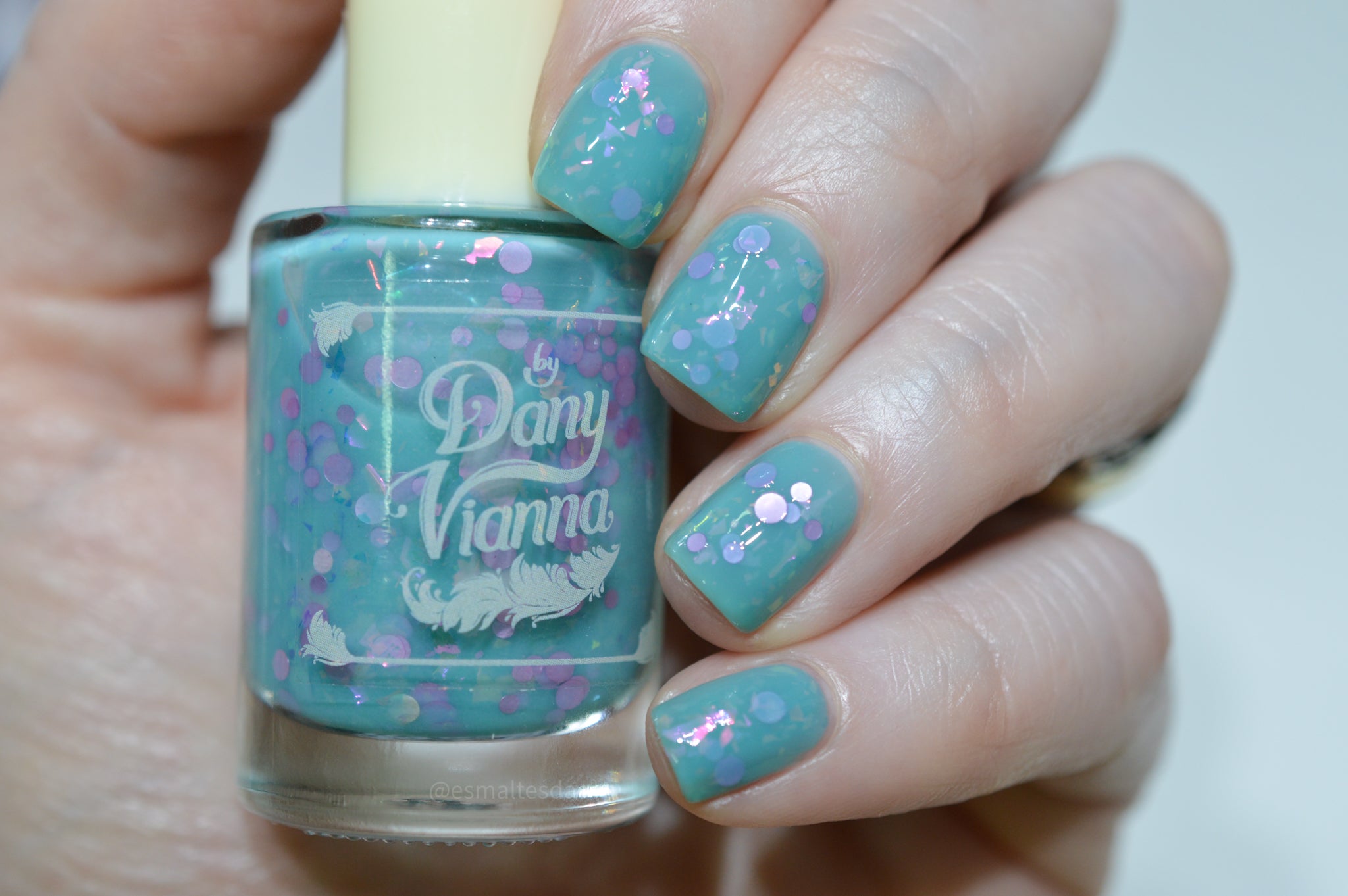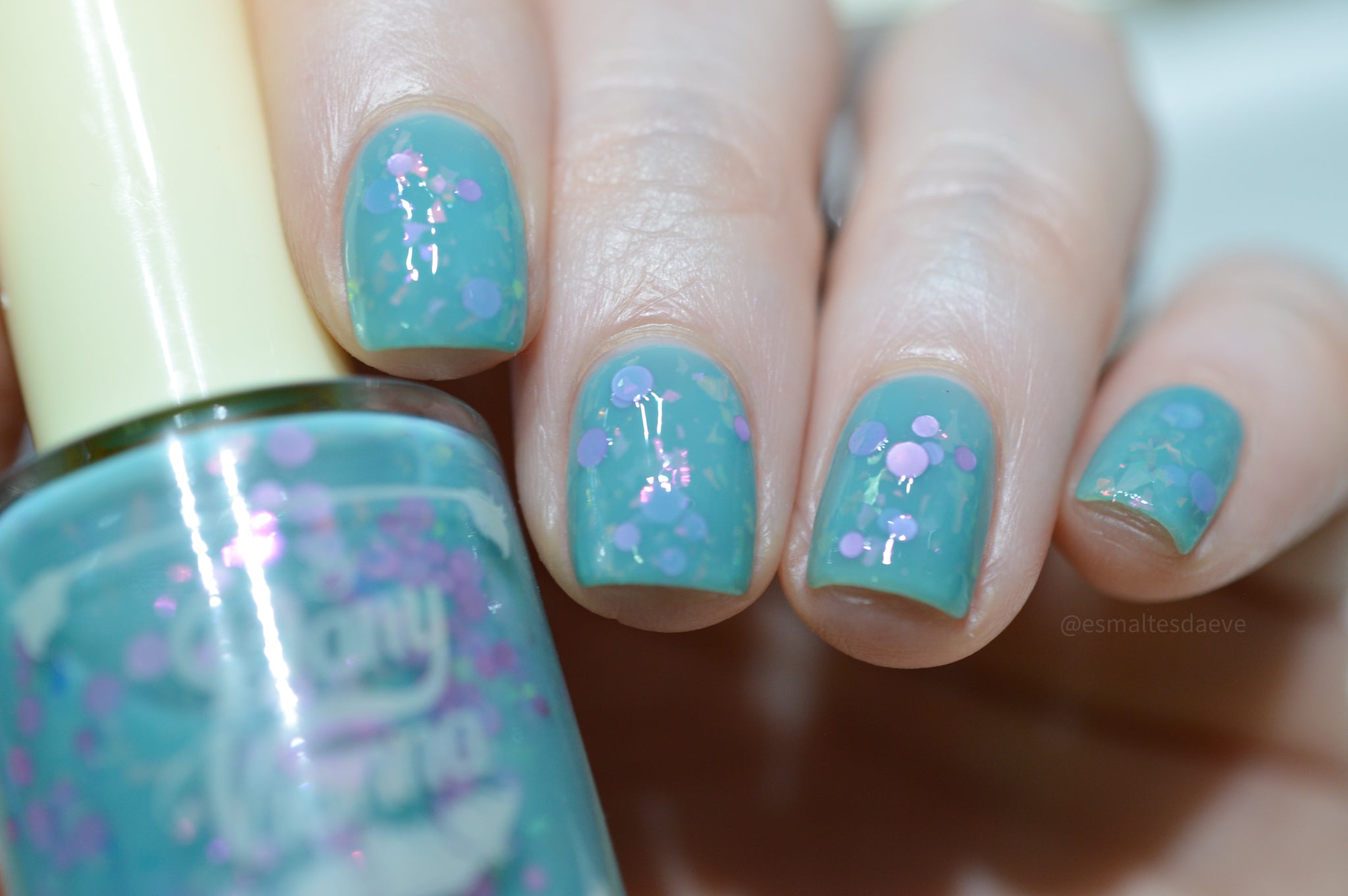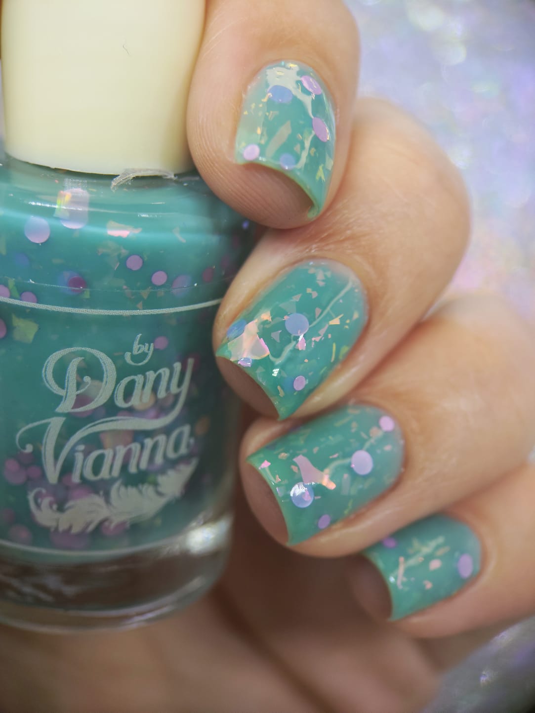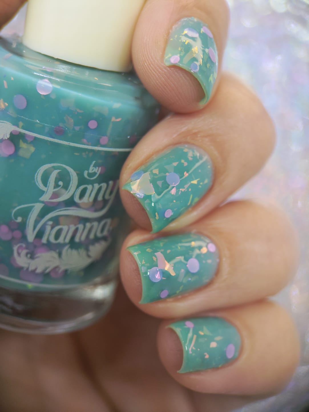 inspired by one scene released where Glinda is living her best life in the Emerald Palace, surrounded by an entourage all dressed in teal/aqua whilst she's in pale pink. Good has a teal crelly base with pink iridescent flakes and pink round glitters.