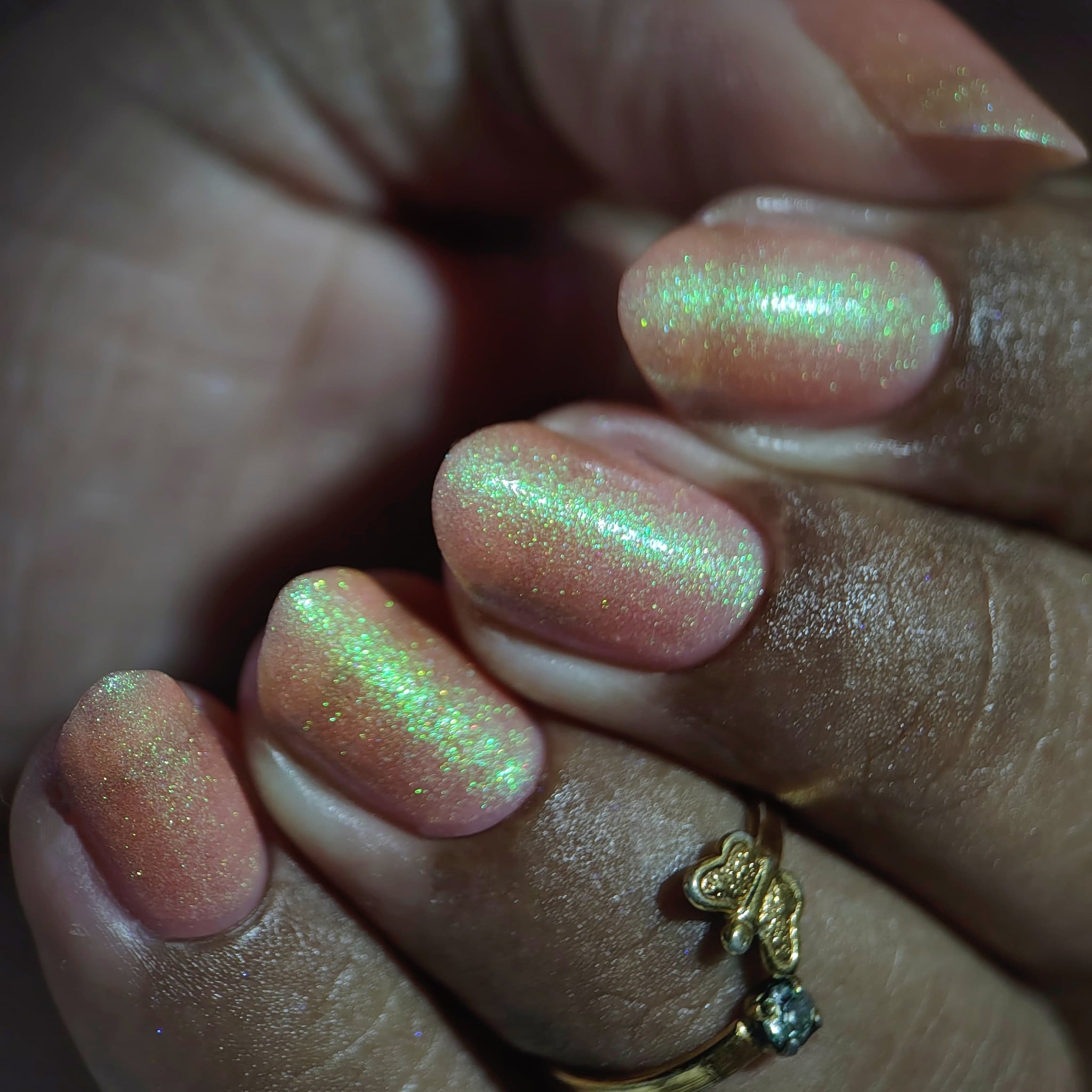 is that scene. That iconic scene. It's her face, her clothing all over... we have a pink jelly base with green aurora shimmer and a pink GITD effect