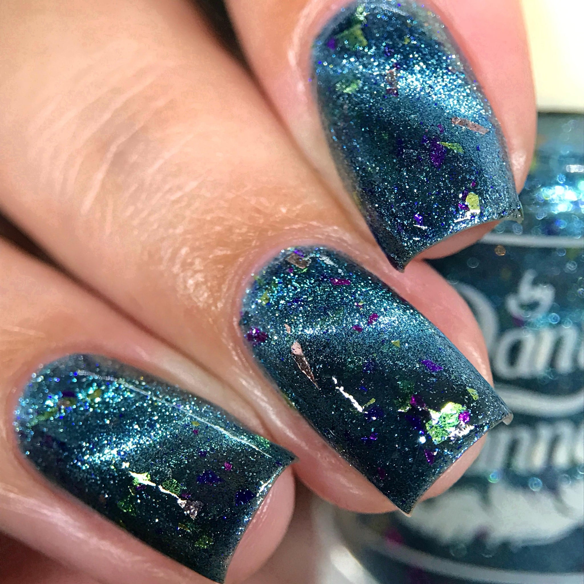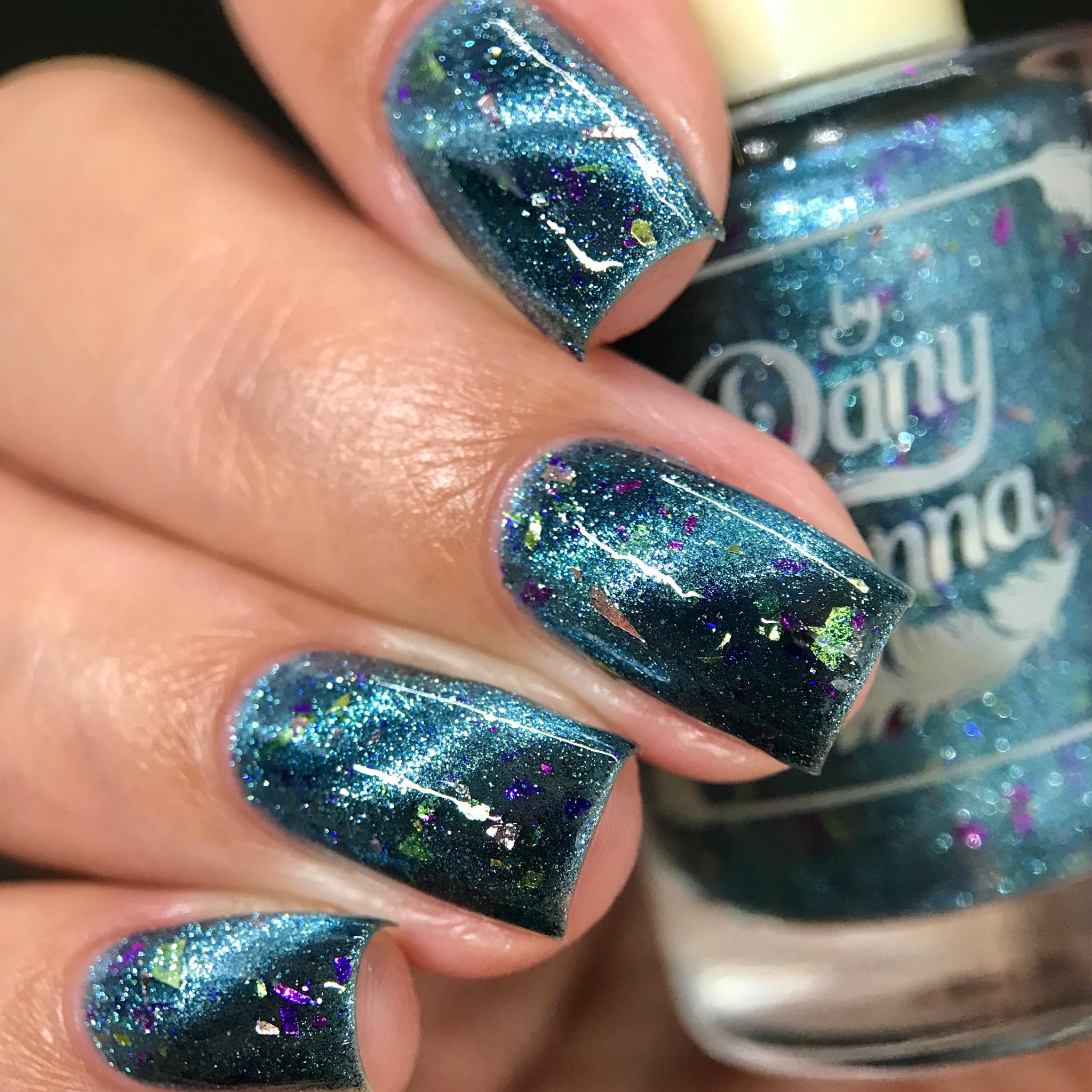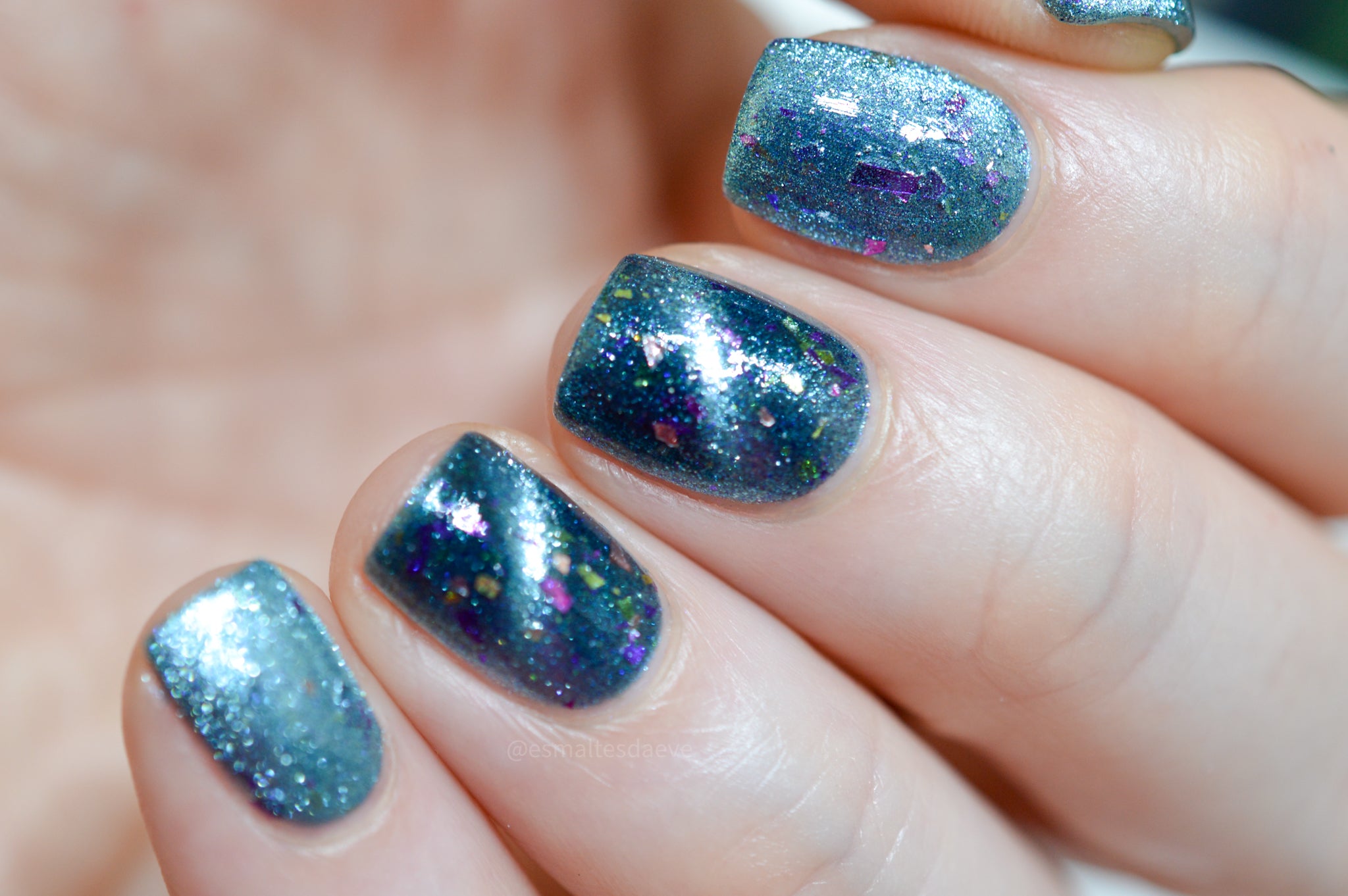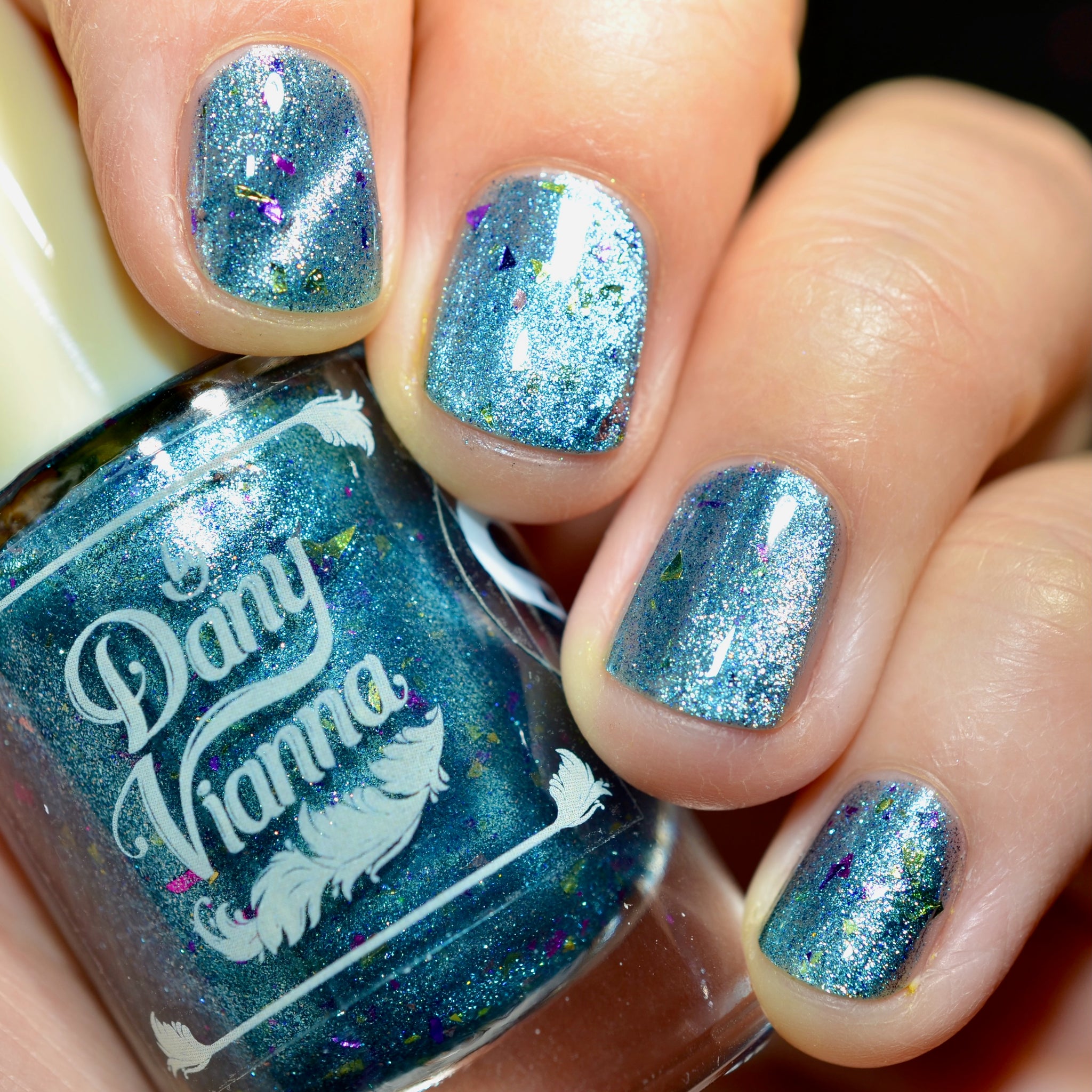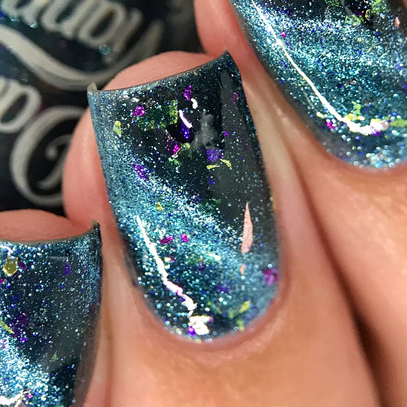 inspired by the ballroom they go to, and where Elphaba and Galinda finally meet each other as equals and not rivals. The shade is inspired by the exact moment when they arrive and we see the saloon underneath the lake at the school. We have a teal jelly base with a mix of metallic shreds and a light blue magnetic effect.