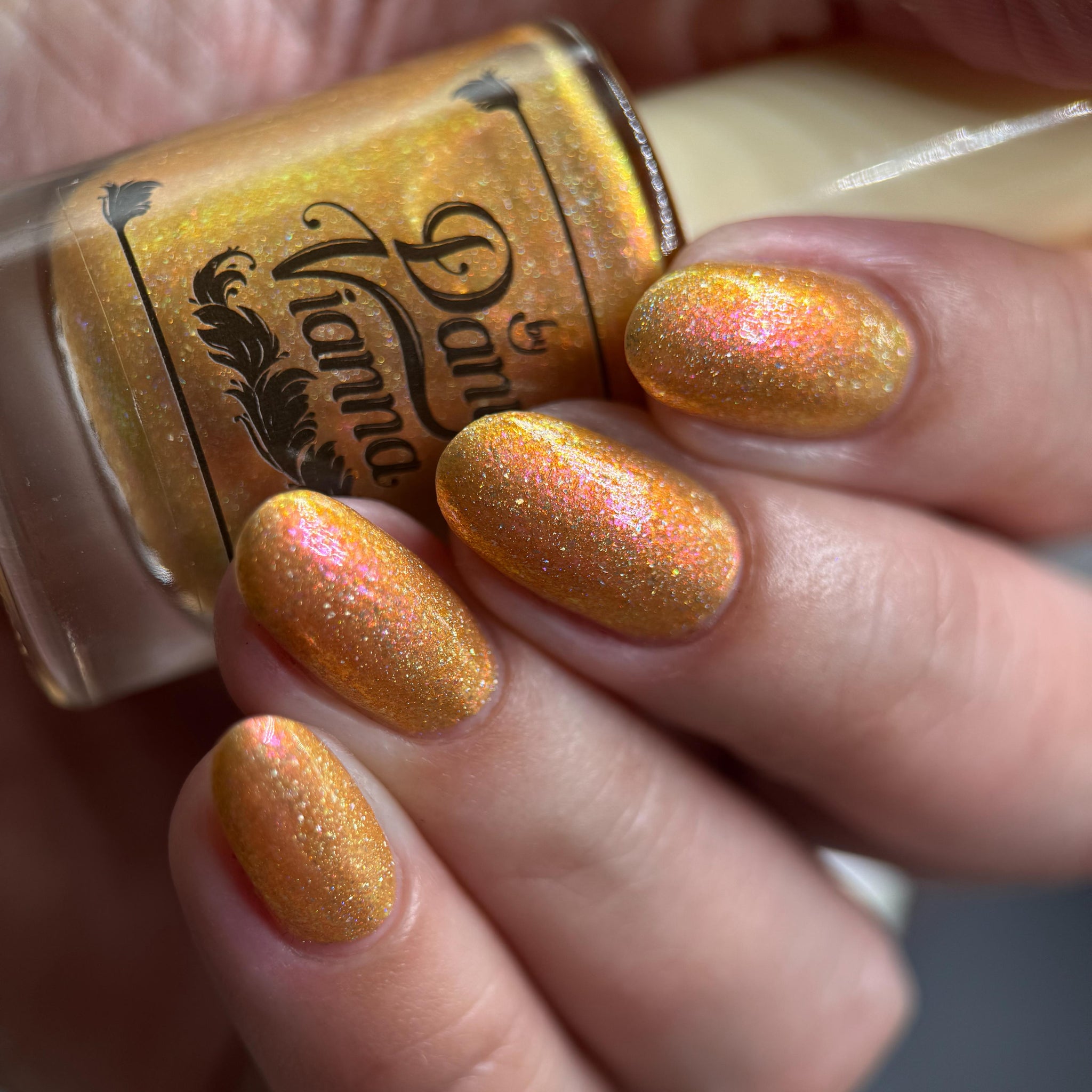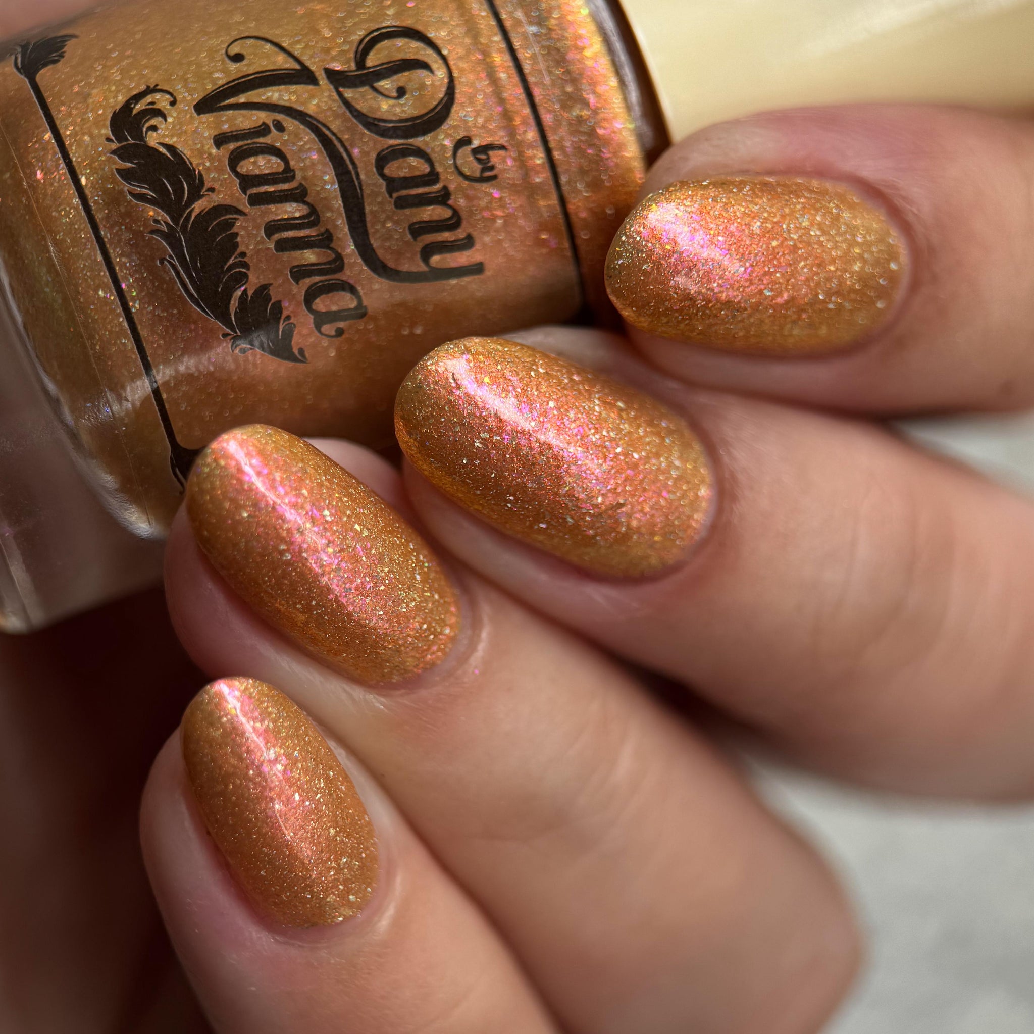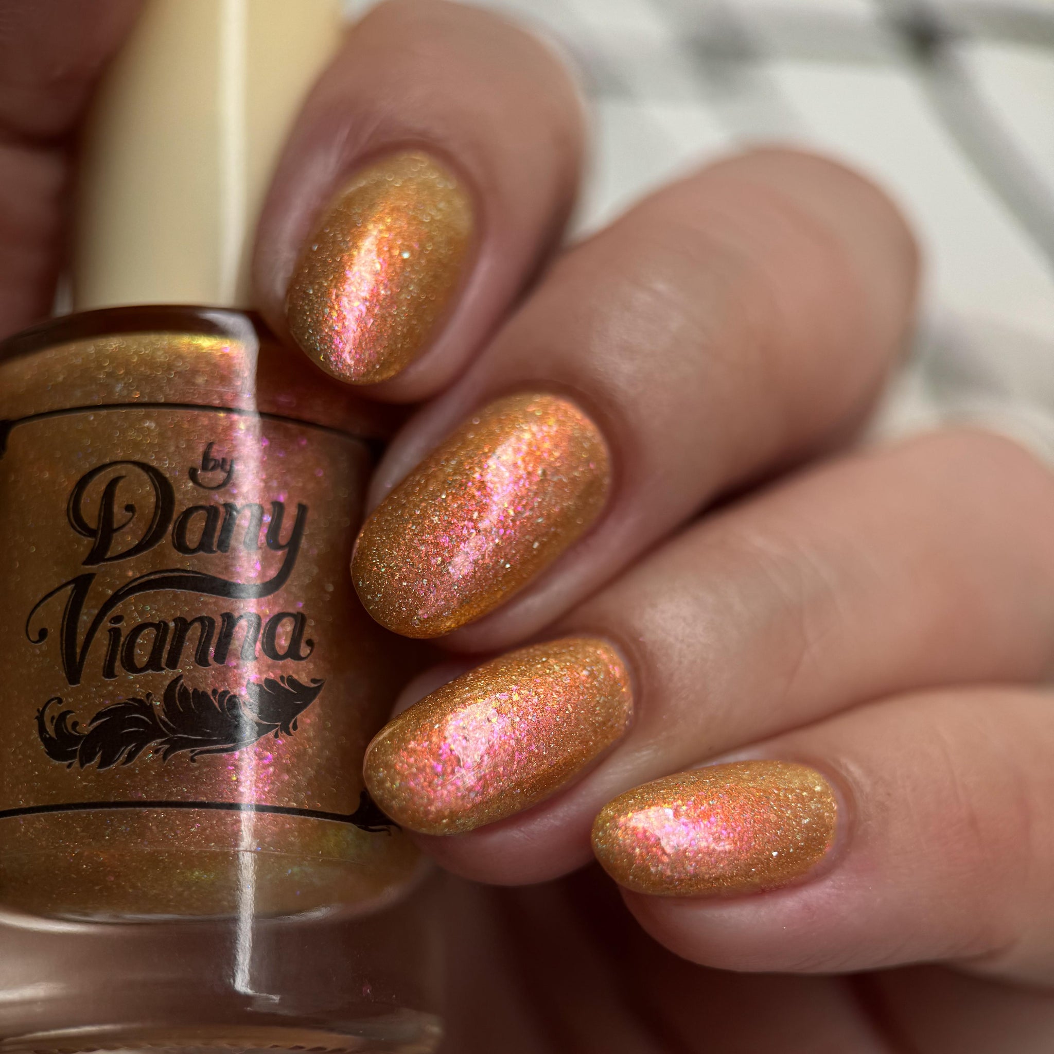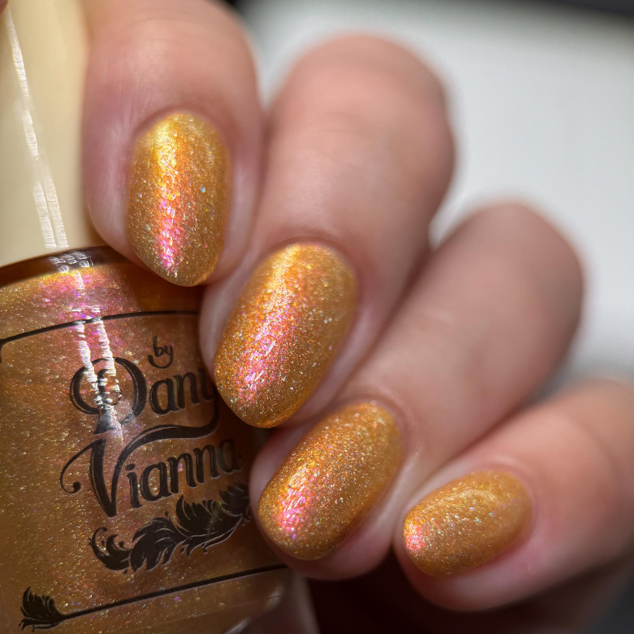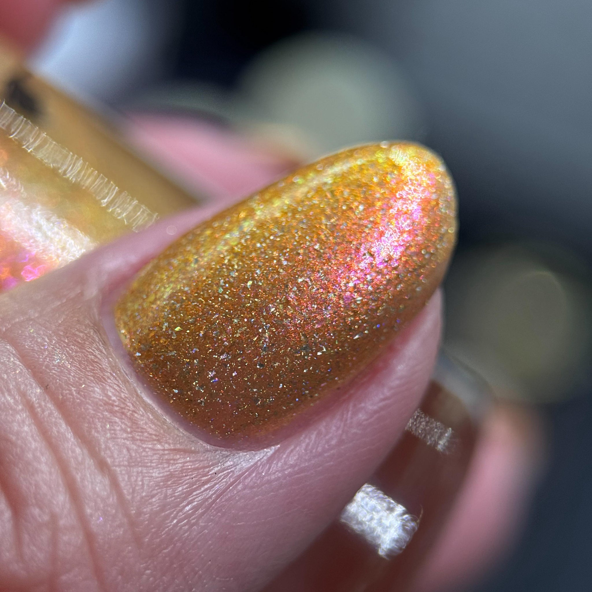 inspired by Galinda's dress to the Ozdust and we have a peachy coral crelly base with a pink aurora shimmer and holographic micro flakes