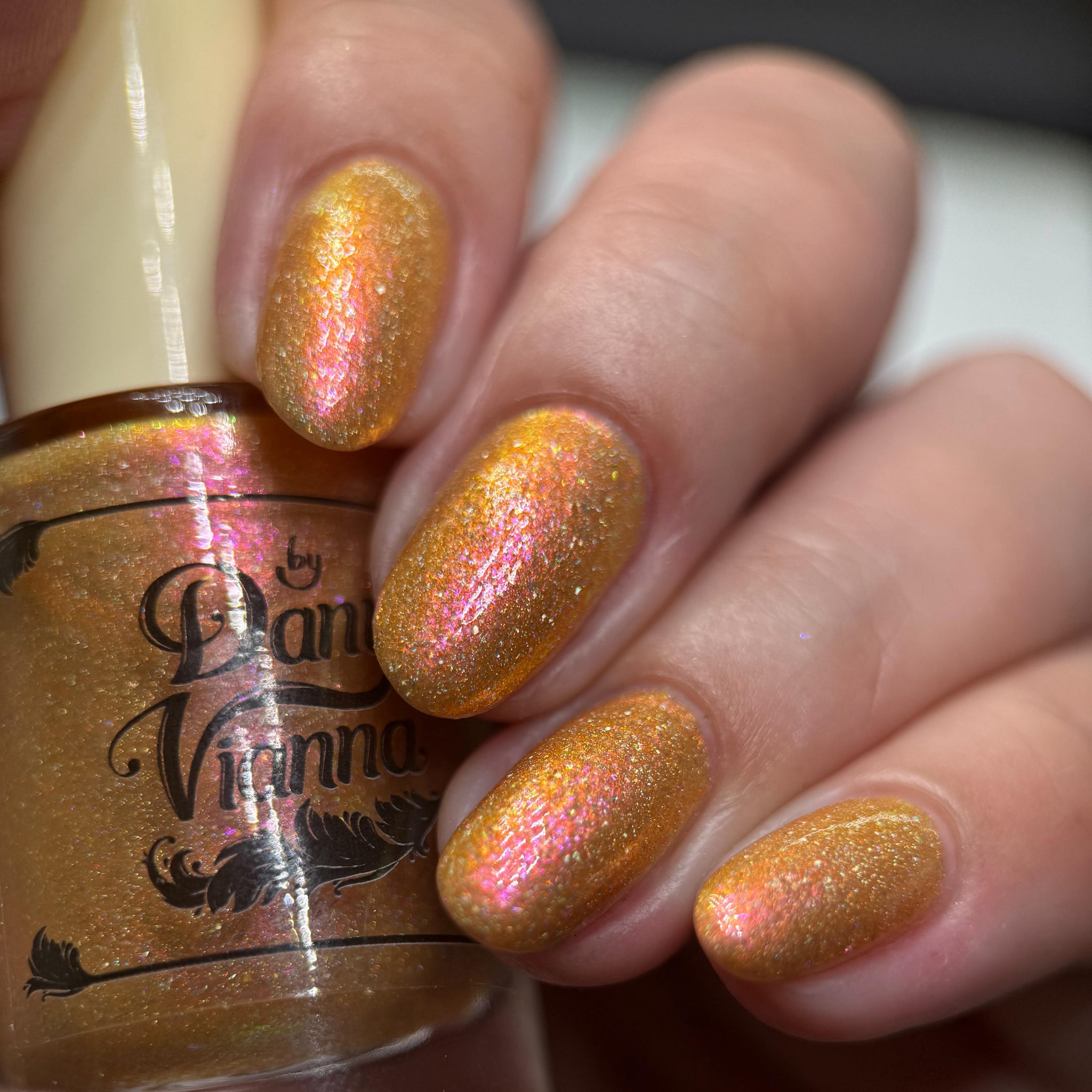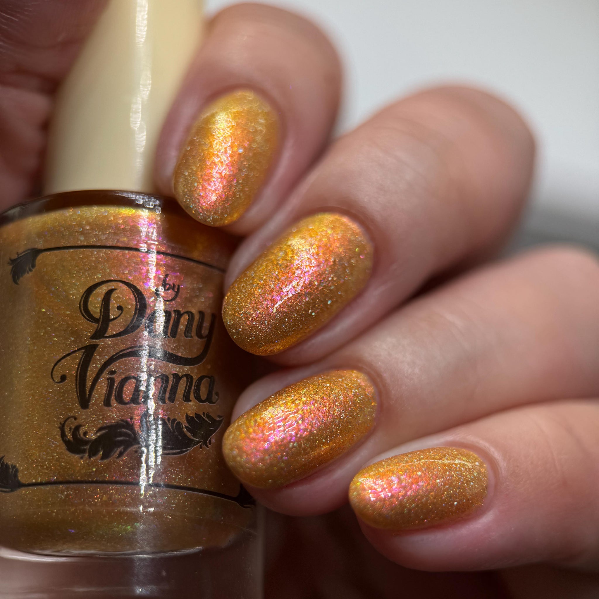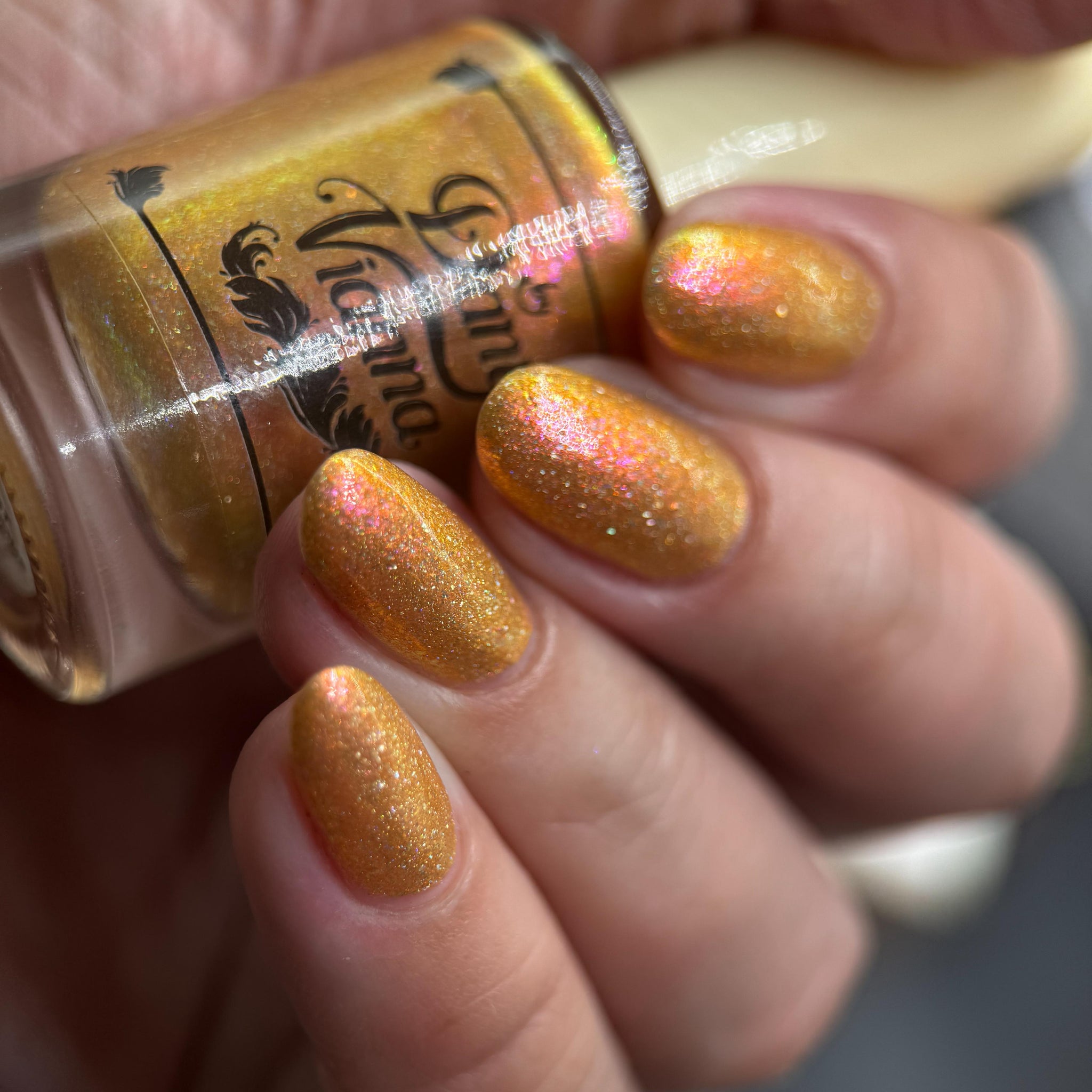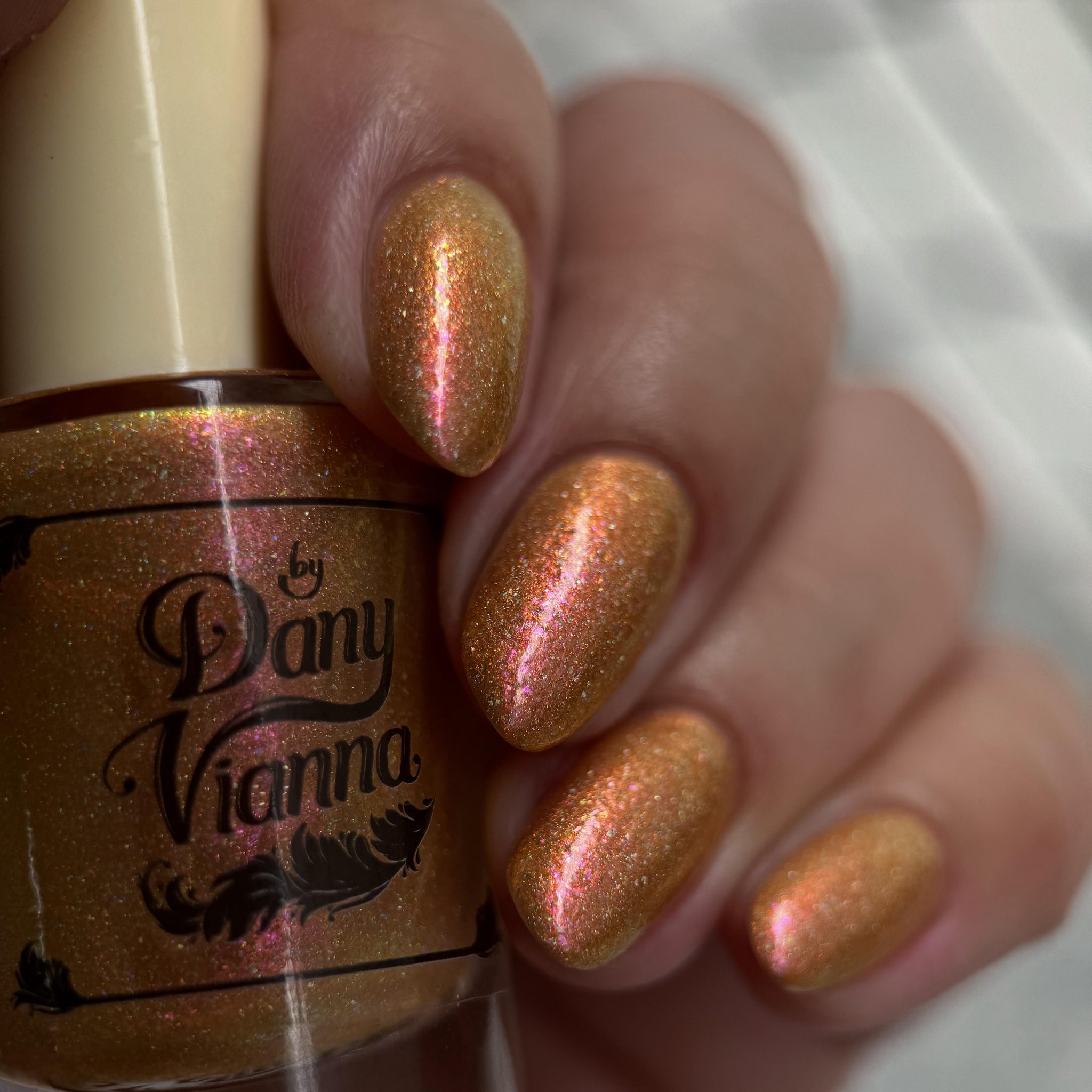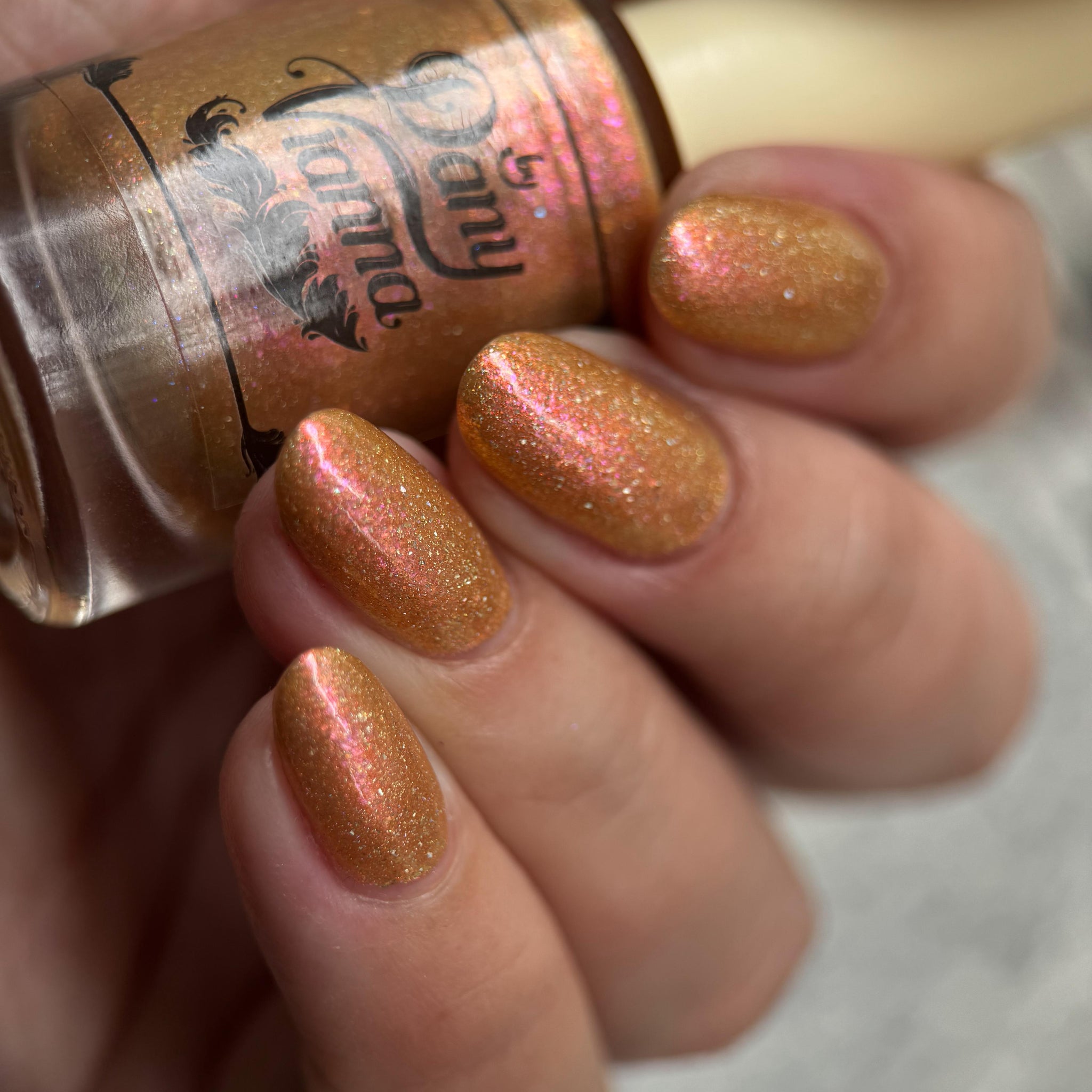 inspired by Galinda's dress to the Ozdust and we have a peachy coral crelly base with a pink aurora shimmer and holographic micro flakes
